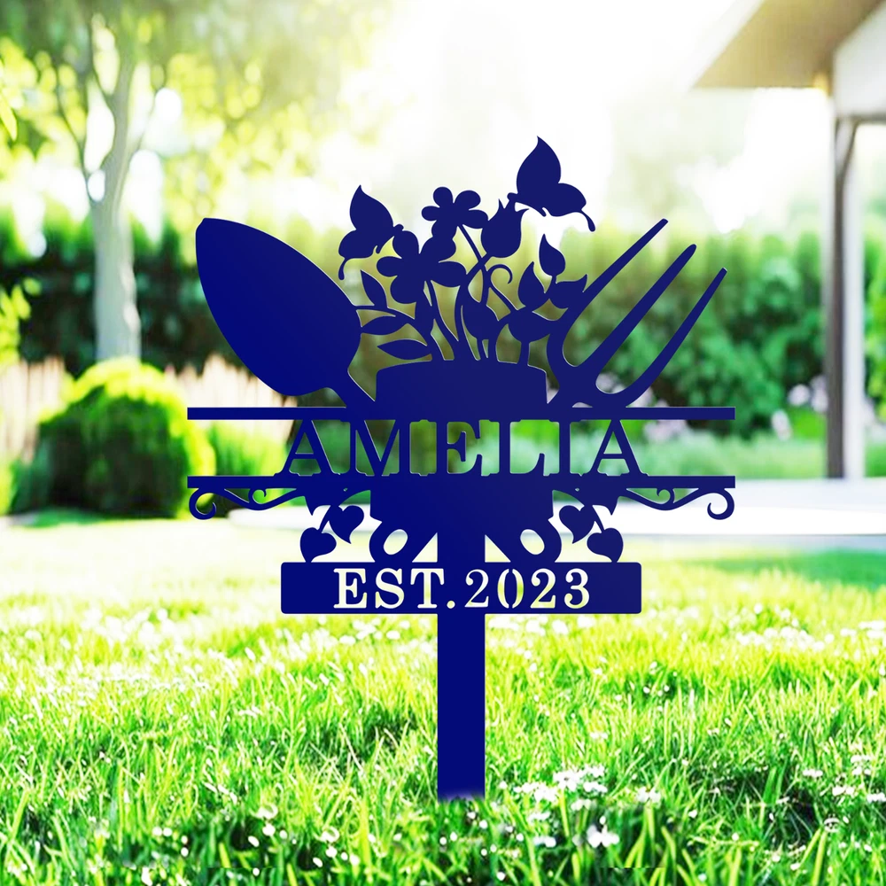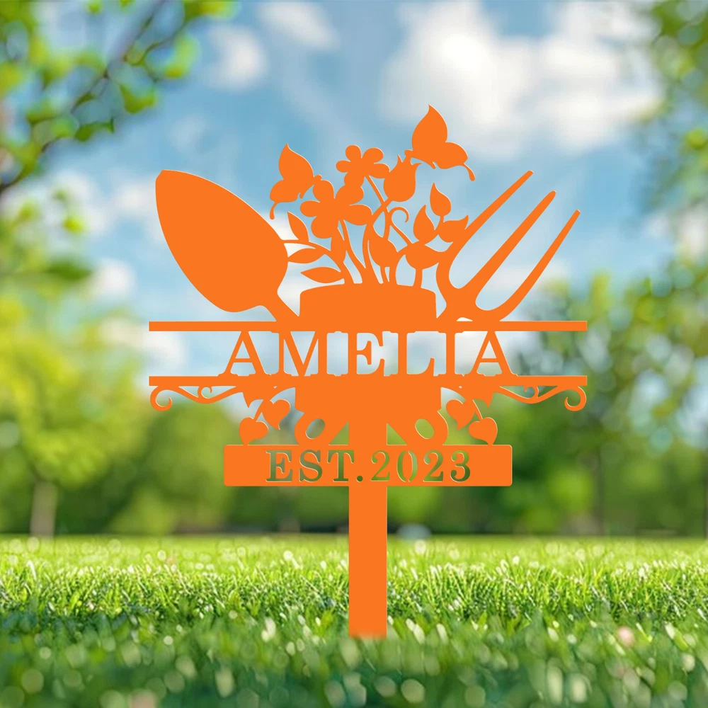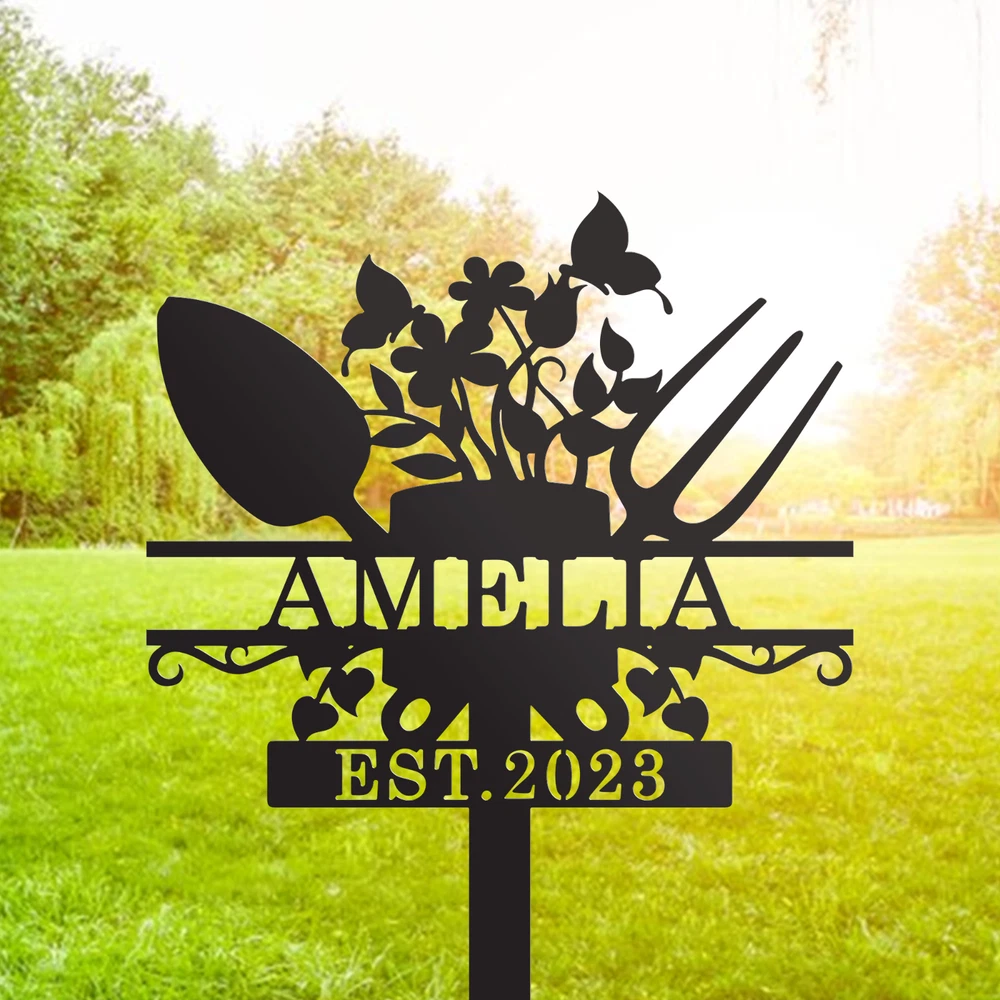 Custom Metal Garden Sign With Stakes, Sign for Flower Beds, Personalized Garden