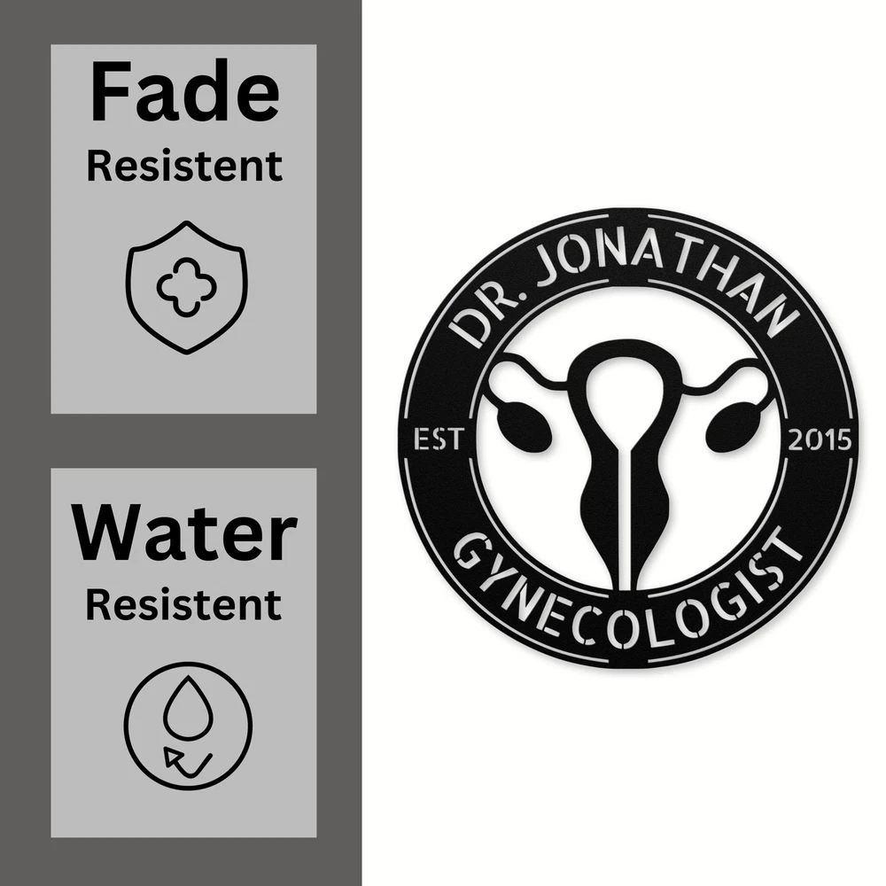 Product Description Custom Metal Gynecologist Logo Metal Art Sign Personalized Gynecology Wall Signs Celebrate the dedication and professionalism of gynecologists with our Custom Gynecologist Metal Sign . Made from 16 gauge high-quality metal, this sign is built to last. The durable powder-coated finish ensures that it is dust, weather, and water-resistant, making it ideal for both indoor and outdoor use. This customizable sign allows you to add your name or a unique message, making it a personal touch for your office or home. It’s a perfect way to showcase your pride in your profession while creating a welcoming environment for your patients. The Custom Gynecologist Metal Sign also serves as a thoughtful gift for Christmas, birthdays, or any special occasion for the gynecologists in your life. Show your appreciation for their hard work and care with a personalized sign that they will cherish for years to come. Key Features: Customizable Design: Personalize with your name, title, or a meaningful phrase. Durable Material: Crafted from 16 gauge high-quality metal for long-lasting use. Weather-Resistant: Powder-coated finish protects against dust, moisture, and fading. Versatile Display: Perfect for homes, medical offices, or clinics. Great Gift Idea: Ideal for celebrating gynecologists on birthdays, holidays, or special occasions. Honor the commitment of gynecologists with the Custom Gynecologist Metal Sign and add a unique touch to any space! Service and Color Choice Our metal signs are designed to be personalized just for you, making them the perfect addition to any space! The default color for our signs is Black , but we also offer a variety of beautiful options including Copper, Gold, White, and Silver . After placing your order, simply contact us with your preferred color choice, and we'll ensure your sign is exactly how you envision it. Let’s create something special together!