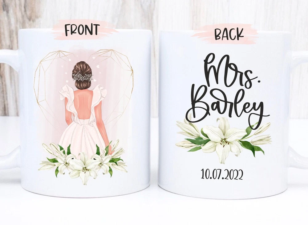 Custom Mrs Mug Mrs Mug New Wife Mug Bride Mug Personalized Mrs Mug Engagement Product Details.. This high quality 11oz. ceramic white mug has a premium hard coat that provides crisp and vibrant color reproduction sure to last for years. Perfect for all hot & cold beverages. The highest quality printing possible is used. It will never fade no matter how many times you wash it. Material: 100% Ceramic. Print both sides. Dishwasher and Microwave Safe. High Gloss + Premium White Finish. Printed in the U.S.A. Personalized & Custom. We support personalized and custom mug to add custom, when placing an order, you can add notes to the "order note" in shipping address section. Also you can contact us directly via message. Shipping Info. Ready to ship in 1 to 2 business days, All products are made-to-order and proudly printed in the United States. Shipped by USPS and DHL, You will receive your order in 5-7 days. Replace & Refund. All products are defective during shipping broken, chipped will be replaced free of charge. You are not satisfied with the product, we will refund 100% money to you. If any other issues arise, please do not hesitate to message, we would be more than happy to assist you.