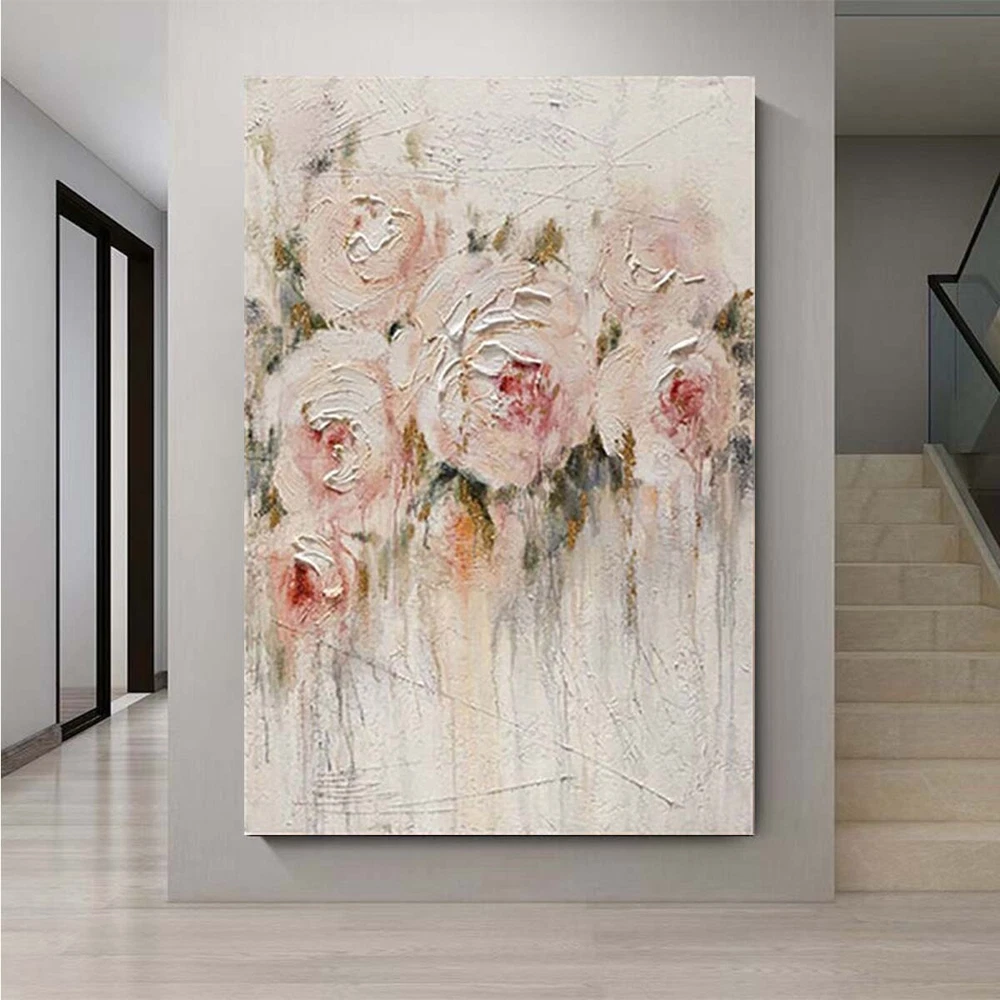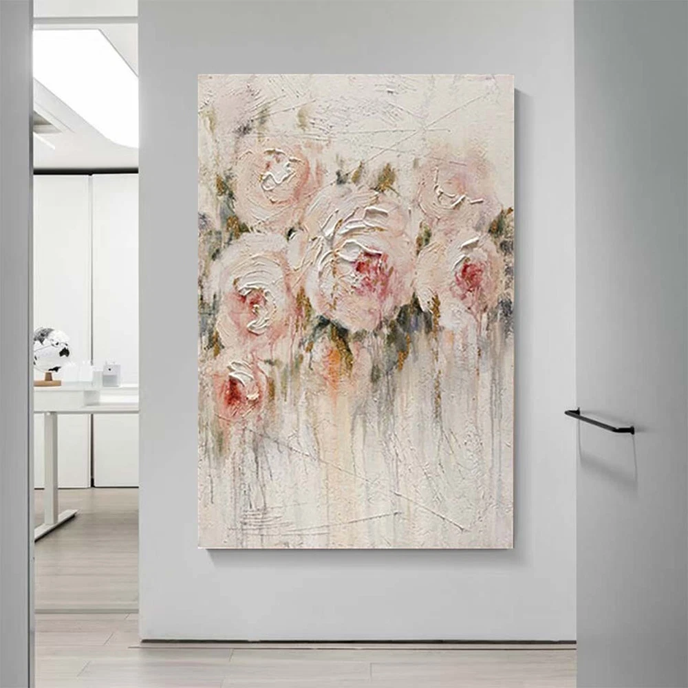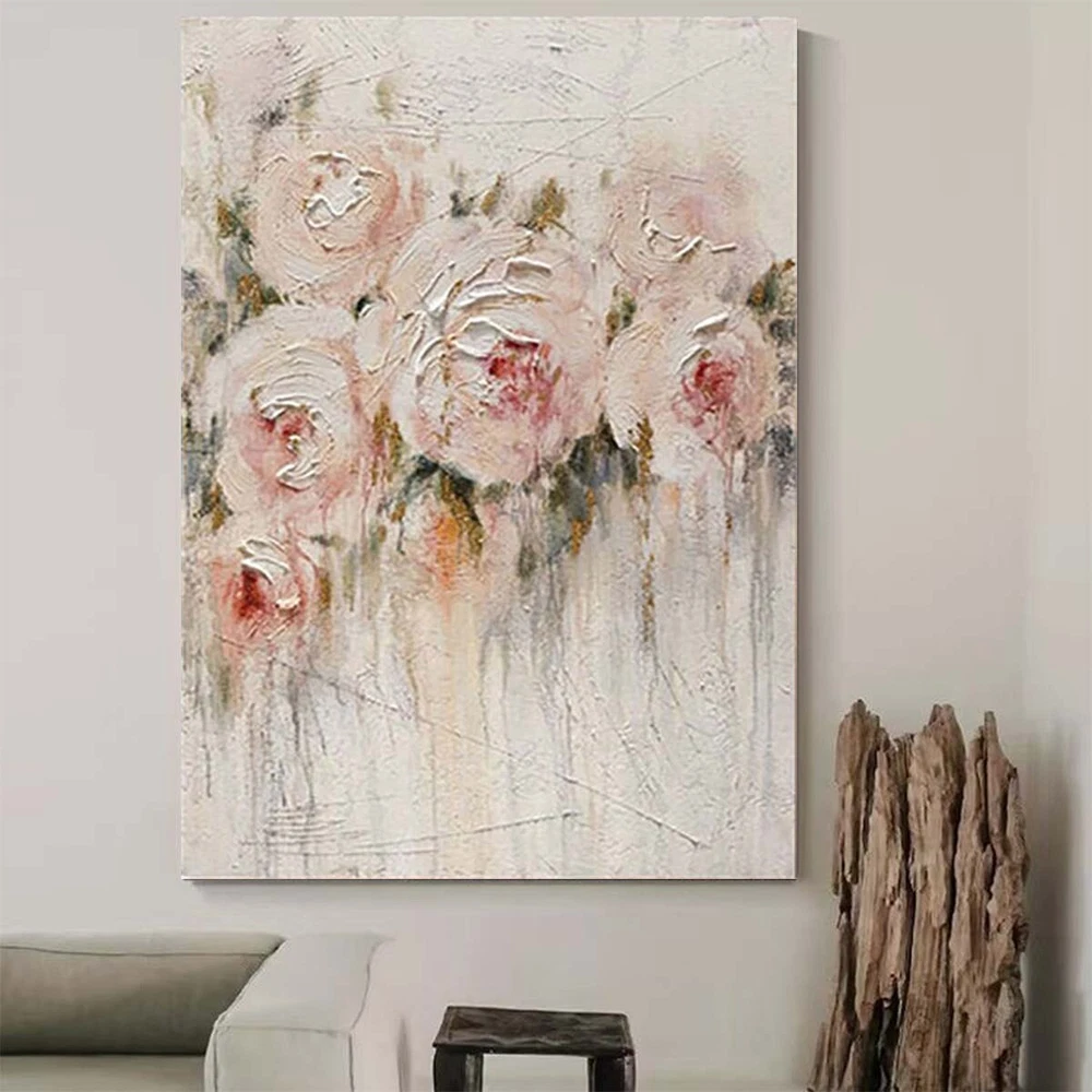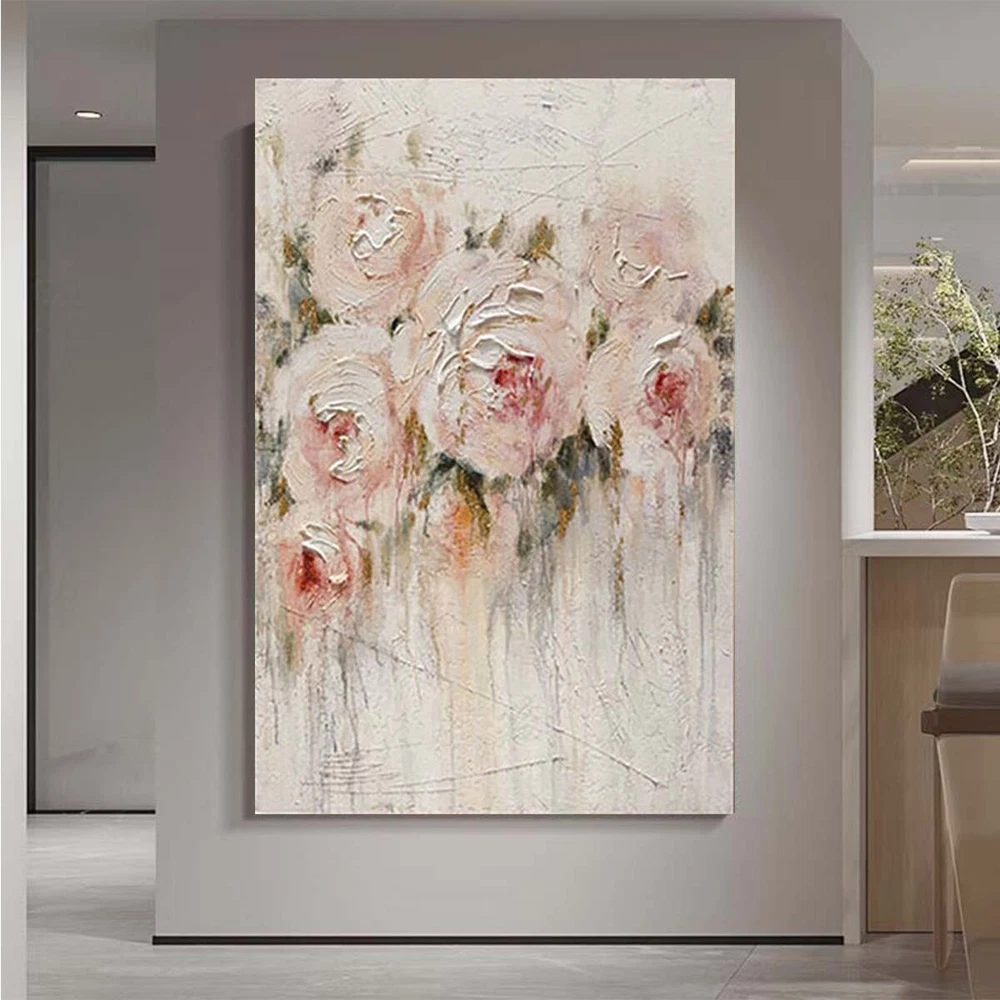 Custom Mural Handmade Oil Painting Peony Flower Abstract Canvas Wall Art Decor