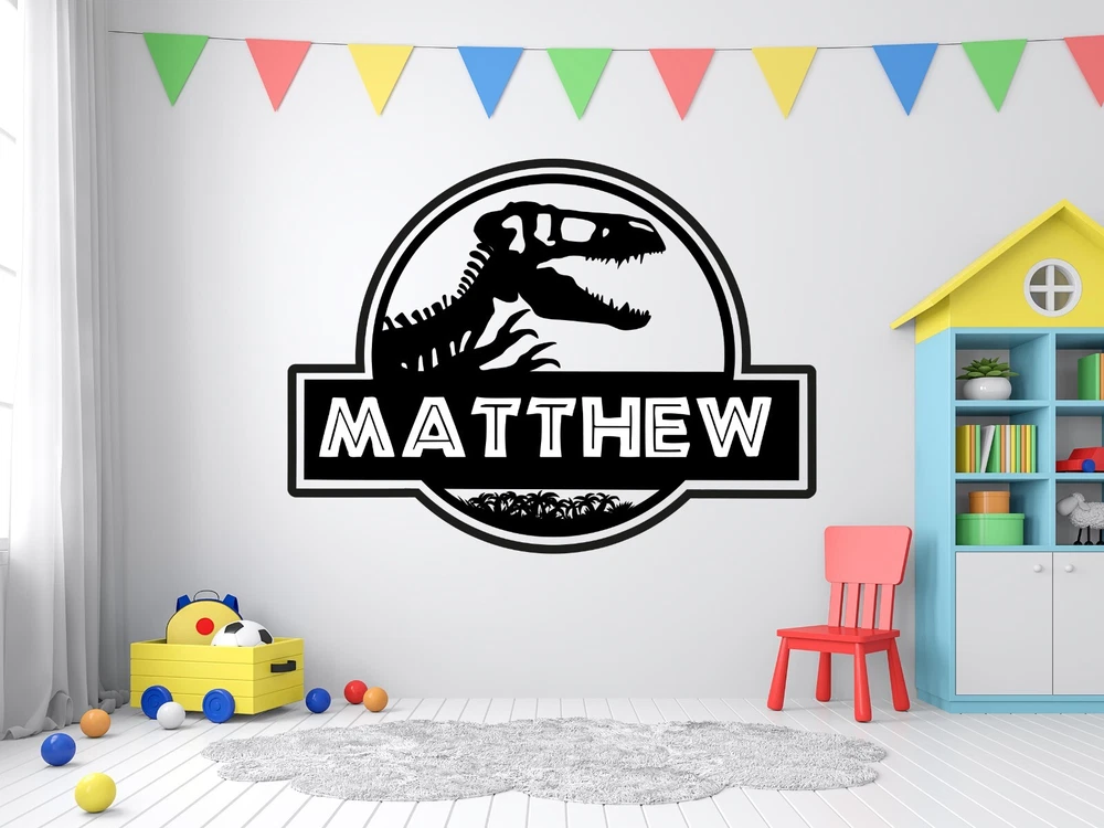 Custom Jurassic Dinosaurus Name Sticker – Multiple Colors Available! Bring the thrill of dinosaurs to your space with this personalized Jurassic Dinosaurus Name Sticker ! Customizable with any name or word (up to 11 characters) and available in various colors, this sticker is perfect for kids, teens, and adults alike. Product Details : Sizes Available : 11"x15", 16"x22", and 22"x30" Finish : Matte finish for Black; Glossy finish for all other colors Easy to Apply and Remove : Made from high-quality, removable vinyl film that’s simple to apply and leaves no sticky residue upon removal Vinyl Features : Our vinyl stickers are one-of-a-kind! Each sticker is custom-made to order and cut in-house. We use premium, removable, interior and exterior vinyl film made in the USA. These decals can decorate any smooth or semi-smooth surface—perfect for walls, mirrors, metal, and more. ⚠️ Important Notice : Please do not apply wall stickers to freshly painted walls. Manufacturing guidelines recommend waiting 4-6 weeks for the paint to fully cure. How to Install Your Wall Sticker Prepare the Surface : Clean the area where you plan to apply the sticker to ensure it's smooth, dry, and free of dust or oils. Stickers adhere best to flat, non-porous surfaces like walls, mirrors, glass, and doors. Mark the Position (optional): Use a light pencil mark or masking tape to guide placement, especially for larger stickers. Peel the Backing : Carefully peel the sticker’s backing off, starting at one corner. Take your time to avoid tearing, especially with intricate designs. Apply the Sticker : Begin by placing one edge of the sticker on the surface, then slowly smooth it down with your hand or a flat tool (like a credit card or squeegee) to remove air bubbles. Work from the center outward to prevent wrinkles. Remove the Transfer Tape (if applicable): For stickers with transfer tape, gently peel it off at a 45-degree angle. Take your time to ensure the design adheres well to the surface. Smooth Out Air Bubbles : Use a soft cloth or squeegee to press down and smooth out any remaining air bubbles.