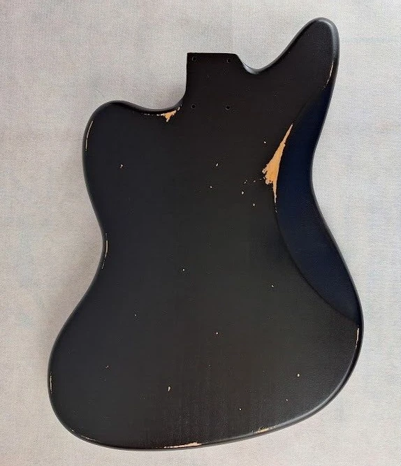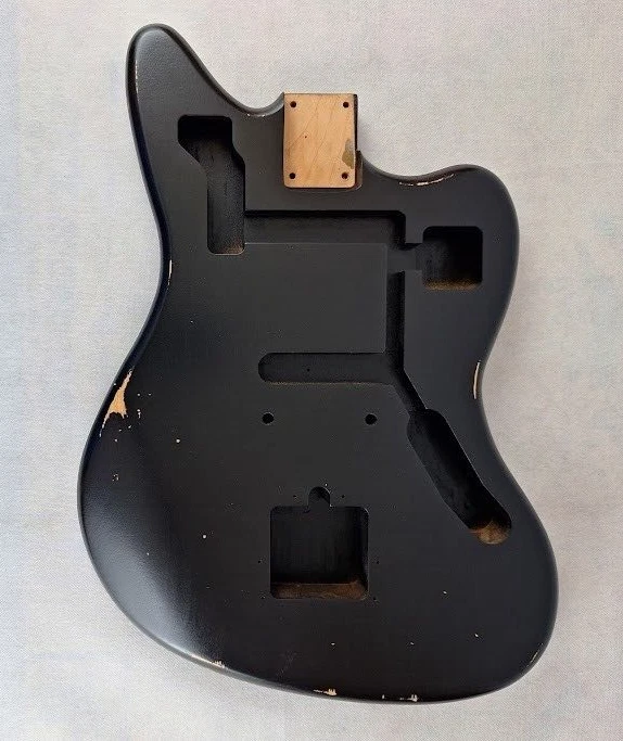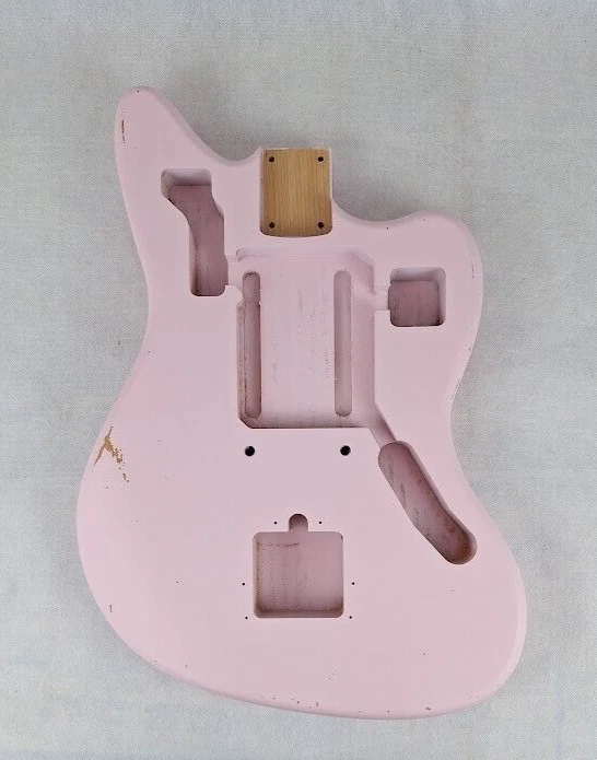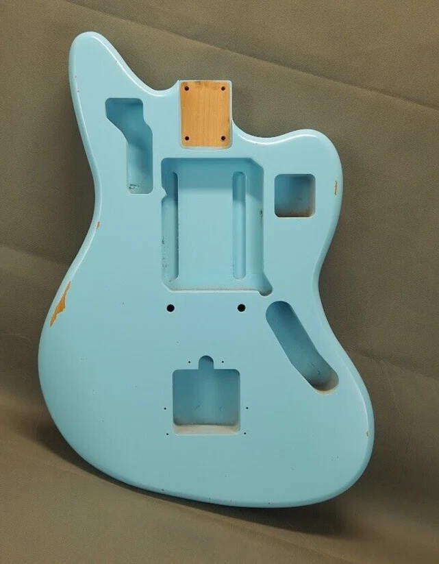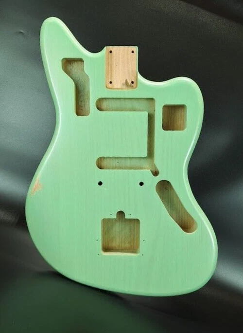 This listing is for a made to order JG guitar body made and finished by Rosser Guitars, LLC. The photos in the listing are for representation only. You are purchasing a made to order body that will ship in 30 business days from the date of being purchased. The guitar body will have a thin, aged/relic nitrocellulose lacquer finish. The texture of the grain will show through the finish, and it will have a more dull, satin look and feel. You can check out the photos in the listing for examples of what the finish will be. I do not offer new, gloss finishes, and I do not offer non-aged, non-relic finishes. Once you have purchased the made to order guitar body, we will send you a message through eBay requesting the color and pickup routing from the available options listed below. Color Options : Natural, Transparent Amber, Blonde, White Blonde, Butterscotch, Two Tone Sunburst, Three Tone Sunburst, Honey Sunburst, Black, Desert Sand, Dakota Red, Fiesta Red, Olympic White, Sea Foam Green, Coral Pink, Translucent Coral Pink, Shell Pink, Translucent Shell Pink, Daphne Blue, Sonic Blue, Translucent Sonic Blue, Surf Green, Translucent Surf Green, Vintage White, Burgundy Mist, Charcoal Frost Metallic, Ice Blue Metallic, Inca Silver, Lake Placid Blue, Ocean Turquoise, Sherwood Green, Shoreline Gold, Goldtop Gold, Champagne Metallic, Heather Poly Metallic Pickup Routing Options : Jaguar ® style Swimming pool Standard Body Specs : Finish: Aged Nitrocellulose lacquer Wood: 3 piece Alder Construction: Solid Contours: Forearm and tummy Thickness: 1-5/8" Scale Length: 24" Neck Pocket Routing: Jaguar ® style Bridge Routing: Jaguar ® style bridge and tremolo Control Routing: Standard Jaguar ® style Average Weight: 4 lbs to 4-1/2 lbs (We are not able to guarantee an exact weight) Additional Info : Lumber used is kiln dried for stability Neck pocket will be angled and routed to standard U.S. Fender® specs (2-3/16" x 3" x 5/8") Wiring holes will be drilled Adjustments may be required when fitting the neck, parts and hardware * This is not a Fender® body. Rosser Guitars is not affiliated with Fender Musical Instrument Corporation (FMIC). Fender® and Jaguar ® are all registered trademarks of Fender Musical Instrument Corporation (FMIC).