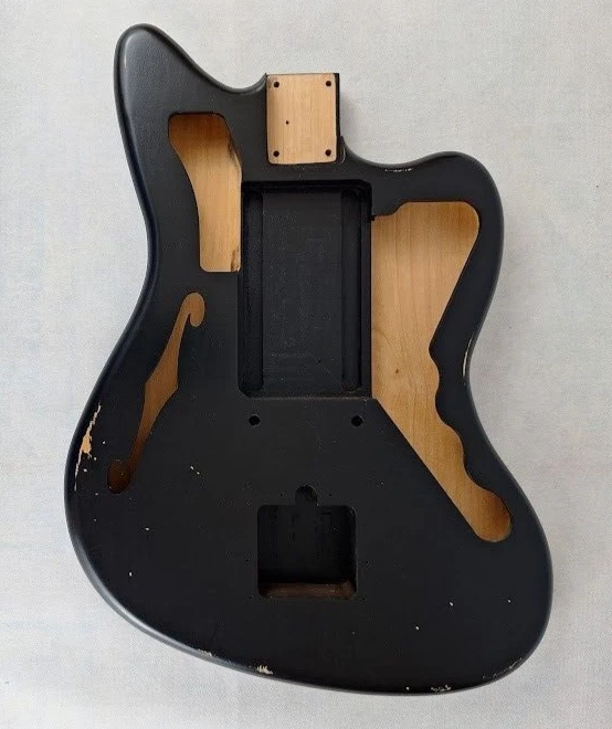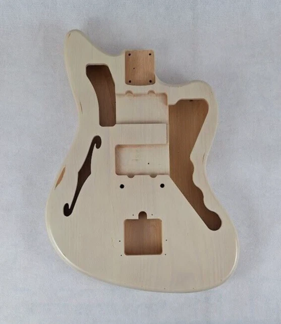 This listing is for a made to order semi hollow JM guitar body made and finished by Rosser Guitars, LLC. The photos in the listing are for representation only. You are purchasing a made to order body that will ship in 30 business days from the date of being purchased. The guitar body will have a thin, aged/relic nitrocellulose lacquer finish. The texture of the grain will show through the finish, and it will have a more dull, satin look and feel. You can check out the photos in the listing for examples of what the finish will be. I do not offer new, gloss finishes, and I do not offer non-aged, non-relic finishes. Once you have purchased the made to order guitar body, we will send you a message through eBay requesting the color, pickup and bridge routing from the available options listed below. Color Options : Natural, Transparent Amber, Blonde, White Blonde, Butterscotch, Two Tone Sunburst, Three Tone Sunburst, Honey Sunburst, Black, Desert Sand, Dakota Red, Fiesta Red, Olympic White, Sea Foam Green, Coral Pink, Translucent Coral Pink, Shell Pink, Translucent Shell Pink, Daphne Blue, Sonic Blue, Translucent Sonic Blue, Surf Green, Translucent Surf Green, Vintage White, Burgundy Mist, Charcoal Frost Metallic, Ice Blue Metallic, Inca Silver, Lake Placid Blue, Ocean Turquoise, British Racing Green, Sherwood Green, Shoreline Gold, Goldtop Gold, Champagne Metallic, Heather Poly Metallic Pickup Routing Options : Jazzmaster ® style Swimming pool Bridge Routing Options : Jazzmaster ® style bridge and tremolo Vintage 6 hole tremolo (2-7/32" screw spacing) Vintage 6 hole tremolo (2-1/16" screw spacing) Fender ® American Standard 2 point tremolo Nashville tune-o-matic bridge and stop tailpiece ( Nashville tune-o-matic bridge specs: 2.93"/ 2-15/16" post spacing; 0.275"/7mm mounting studs; Stop tailpiece specs: 3.25" stud spacing; .440" mounting studs) Vintage Strat ® style hardtail (2-3/16" string spacing) (D rilled for 3/8" flush mount string ferrules) Fender ® American Standard hardtail (2-1/16" string spacing) (D rilled for 3/8" flush mount string ferrules) Gotoh hardtail (2-1/16" string spacing) (D rilled for 3/8" flush mount string ferrules) Hipshot fixed bridge (0.175" Floor Height) (D rilled for 3/8" flush mount string ferrules) Standard Body Specs : Finish: Aged Nitrocellulose lacquer Wood: 3 piece Alder body with a 3 piece Alder top Construction: Semi hollow with a single f hole Contours: None Thickness: 1-5/8" Scale Length: 25-1/2" Neck Pocket Routing: Jazzmaster ® style Control Routing: Jazzmaster ® style Average Weight: 3 lbs to 3-1/2 lbs (We are not able to guarantee an exact weight) Additional Info : Lumber used is kiln dried for stability Neck pocket will be routed to standard U.S. Fender® specs (2-3/16" x 3" x 5/8") Neck pocket will be angled for bodies routed for a Jazzmaster ® style or Nashville tune-o-matic bridge Wiring holes will be drilled We recommend a Warmoth Jazzmaster ® pickguard for bodies with non-standard bridge routing Adjustments may be required when fitting the neck, parts and hardware * This is not a Fender® body. Rosser Guitars is not affiliated with Fender Musical Instrument Corporation (FMIC). Fender®, Jazzmaster ® and Strat ® are all registered trademarks of Fender Musical Instrument Corporation (FMIC).