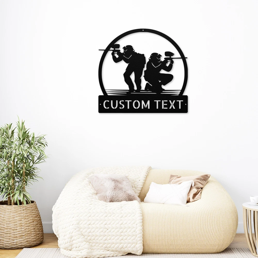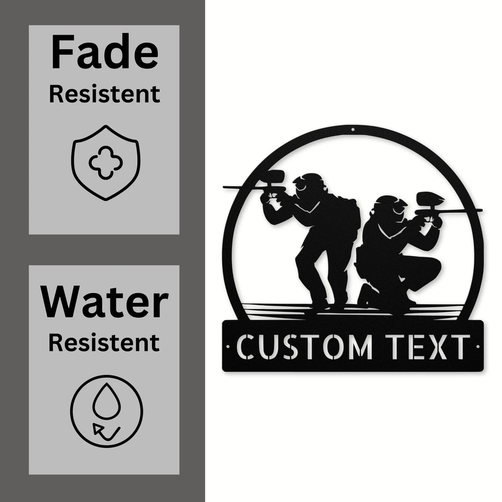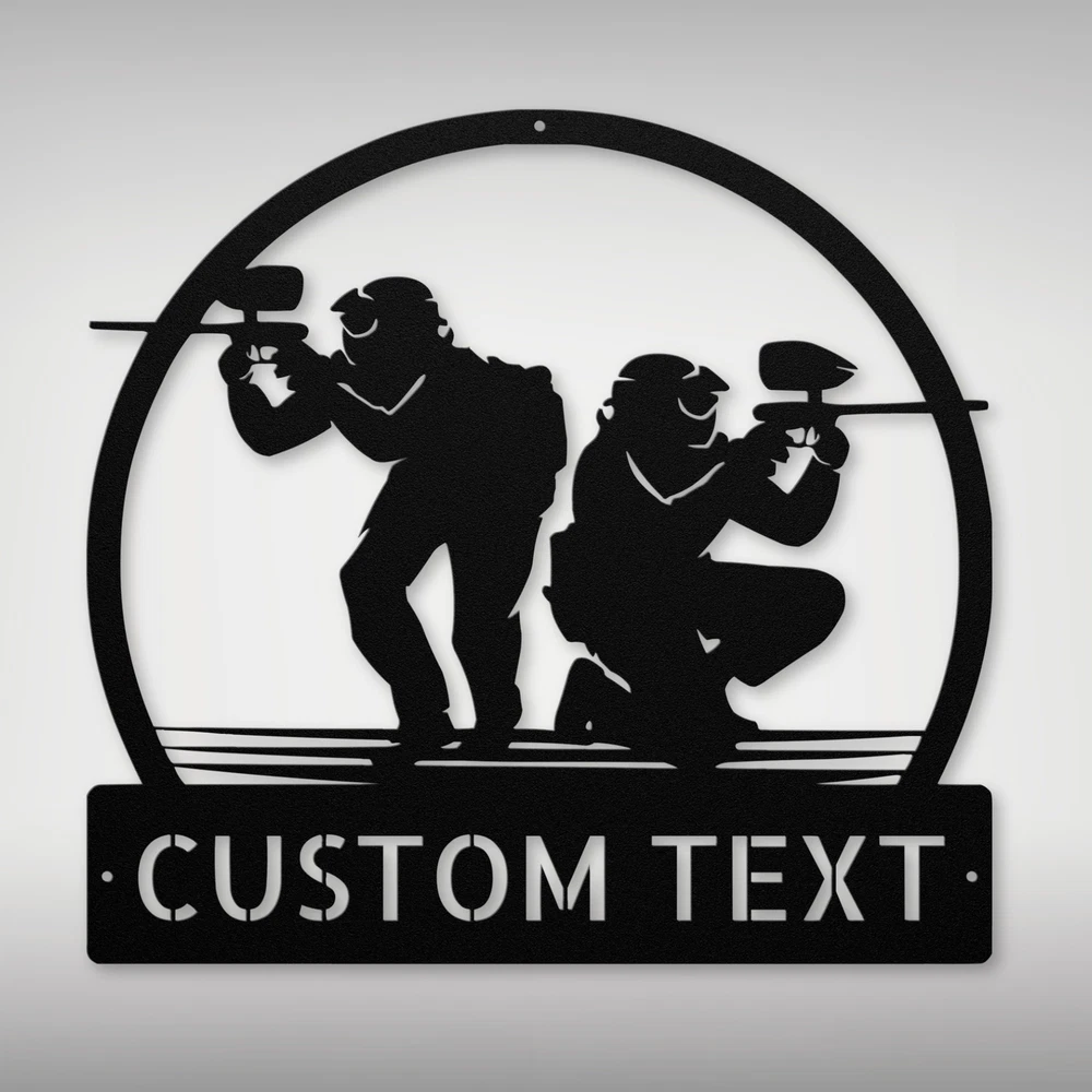Product Description Custom Paintball Metal Sign - Unique Decor for Paintball Lovers Get ready to showcase your passion for paintball with our Custom Paintball Metal Sign ! Crafted from high-quality 16 gauge metal, this sign is built to withstand the test of time. The durable powder coating makes it dust, weather, and water-resistant, perfect for both indoor and outdoor use. You can personalize this sign with your name, team name, or a fun phrase, making it a great addition to your game room, garage, or any space where you want to display your love for the sport. This custom sign also makes a thoughtful gift for birthdays, Christmas, or any special occasion for paintball enthusiasts of all ages. Whether you’re decorating your home, office, or a paintball field, this sign is sure to catch the eye and spark conversations! Key Features: Customizable: Add your name, team name, or a special message. Durable Material: Made from sturdy 16 gauge metal for lasting quality. Weather Resistant: Powder-coated finish protects against dust and moisture. Versatile Decor: Perfect for homes, offices, garages, or game rooms. Great Gift Idea: Ideal for birthdays, Christmas, or special occasions. Elevate your decor and celebrate your love for paintball with the Custom Paintball Metal Sign today! Service and Color Choice Our metal signs are designed to be personalized just for you, making them the perfect addition to any space! The default color for our signs is Black , but we also offer a variety of beautiful options including Copper, Gold, White, and Silver . After placing your order, simply contact us with your preferred color choice, and we'll ensure your sign is exactly how you envision it. Let’s create something special together!