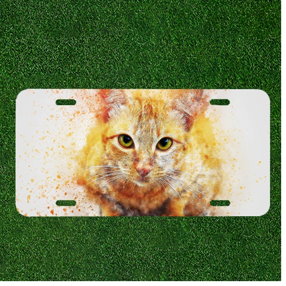 Custom Personalized Auto Tag With Amazing Cat With Yellow Eyes Design