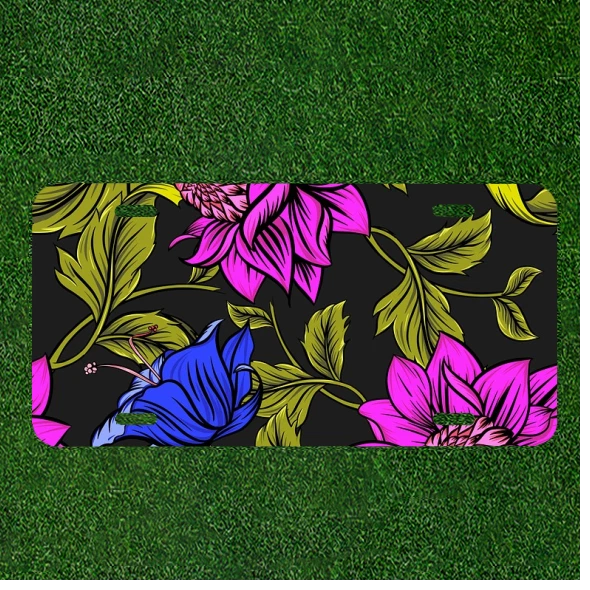 Custom Personalized Auto Tag With Amazing Purple And Blue Flower Design Art