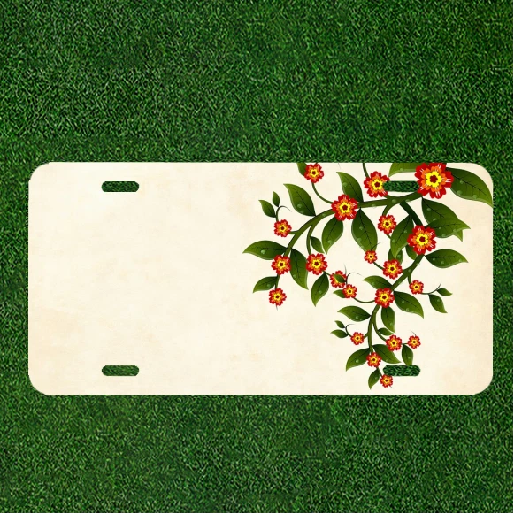 Custom Personalized Auto Tag With Amazing Red And Yellow Flowers Add Names