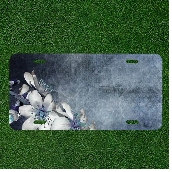 Custom Personalized Auto Tag With Amazing White Flowers Design Add Names