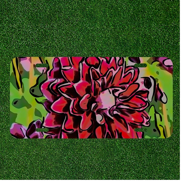 Custom Personalized Auto Tag With Colorful Splash Red Flower Design Art