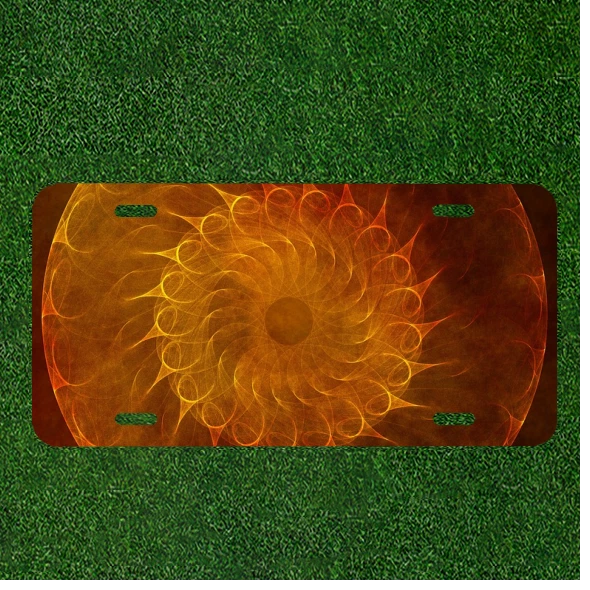 Custom Personalized Auto Tag With Cool Golden Colorful Swirling Design Art