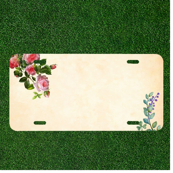Custom Personalized Auto Tag With Fancy Flowers Design Art Add Names