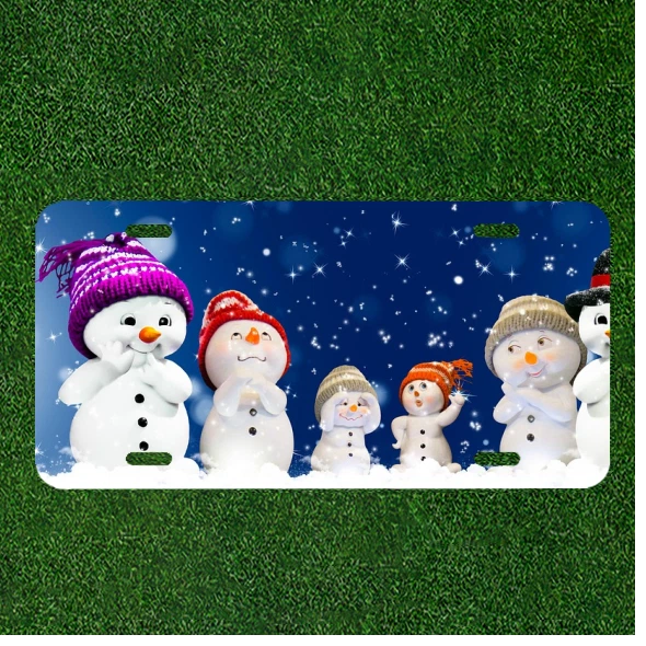 Custom Personalized Auto Tag With Happy Snowman Design Art