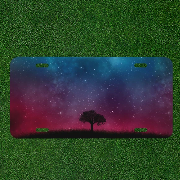 Custom Personalized Auto Tag With Lonely Tree In Night Time Space Design