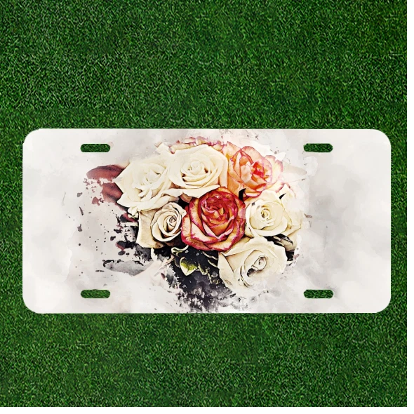 Custom Personalized Auto Tag With White Red And Pink Flowers Design Art