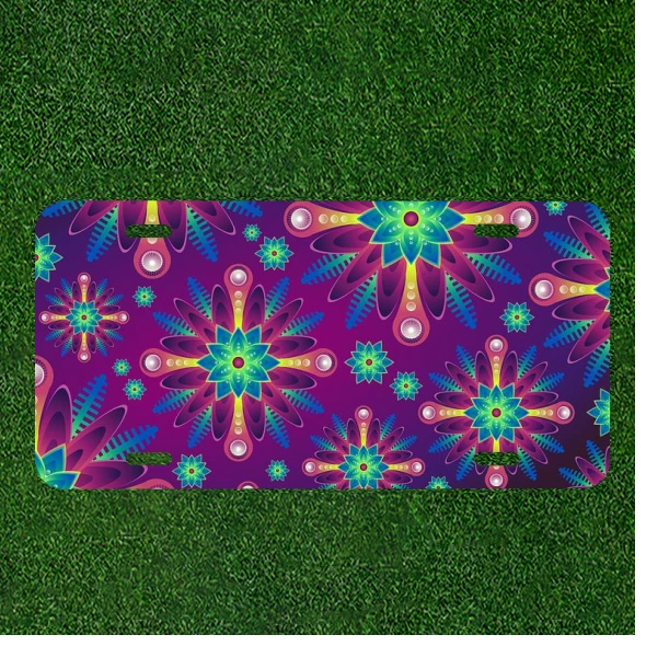 Custom Personalized Car License Plate With Background Texture Floral Purple