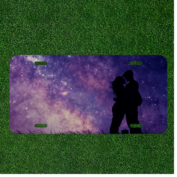 Custom Personalized License Plate Auto Tag With Couple Kissing By Purple Sky