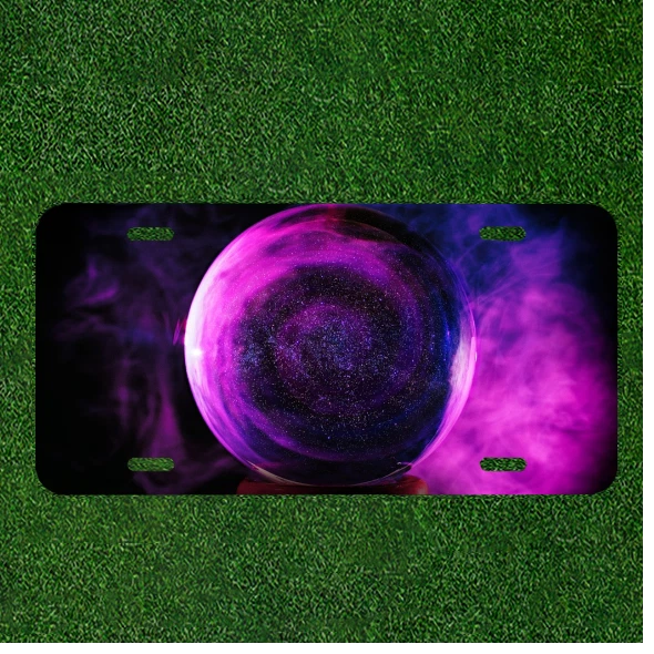 Custom Personalized License Plate Auto Tag With Purple Globe Swirling Design
