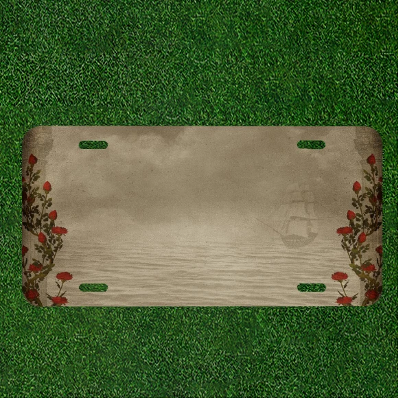 Custom Personalized License Plate Tag With Stunning Flowers With Pirate Ship