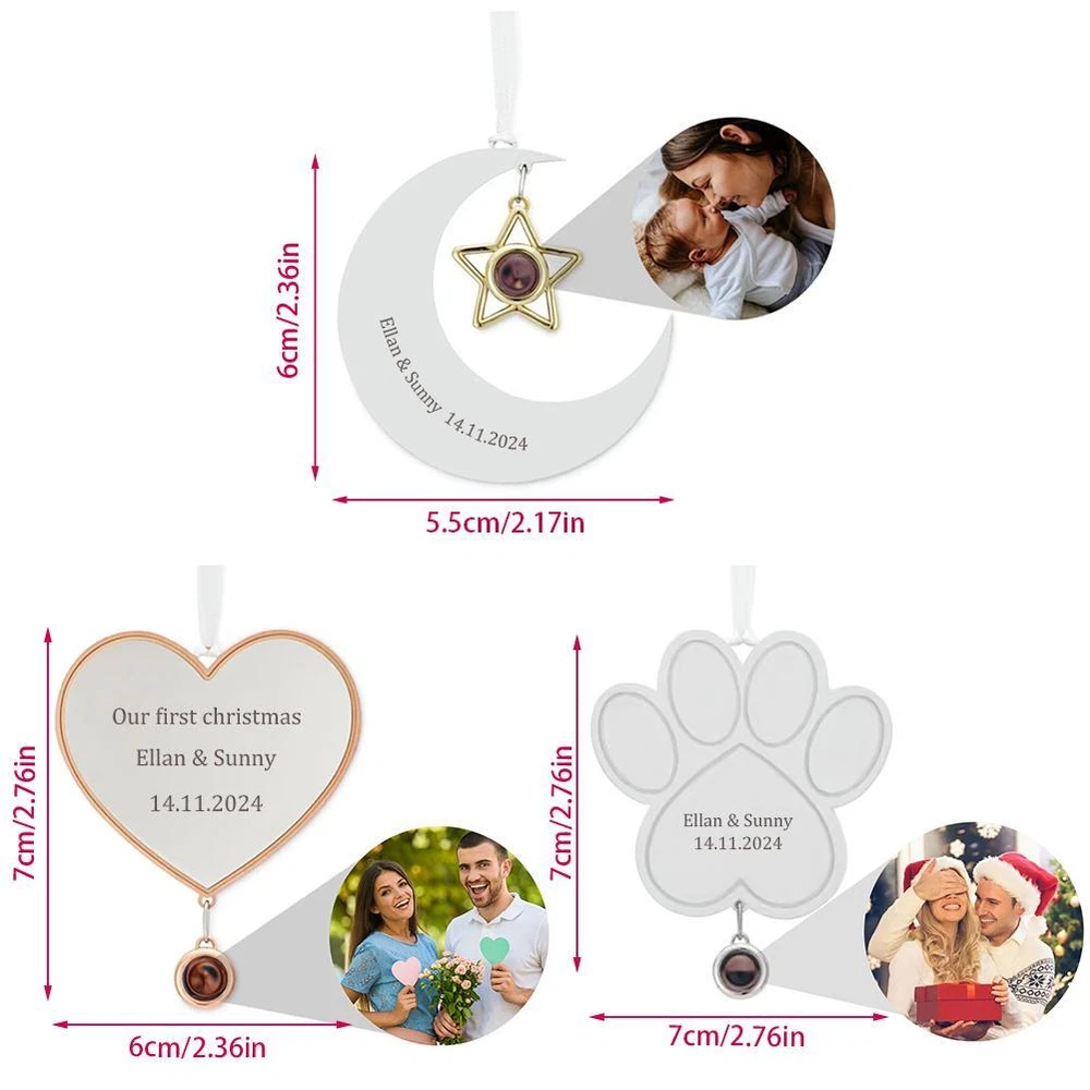 Custom Photo Ornament, Personalized Picture Projection Decor Family Love Gift
