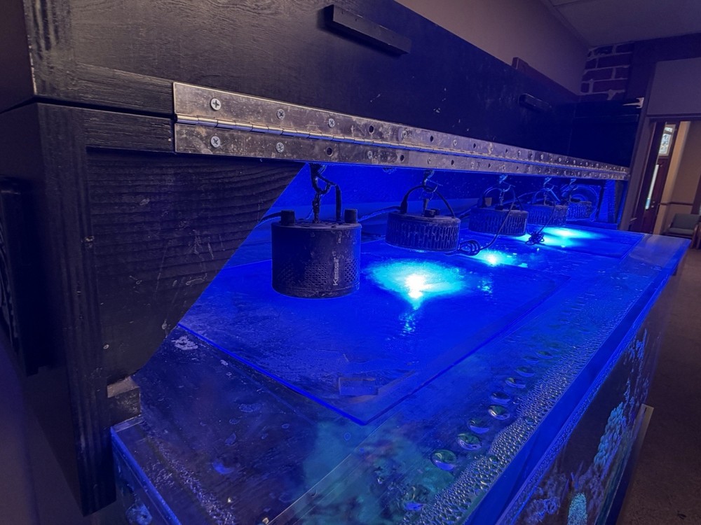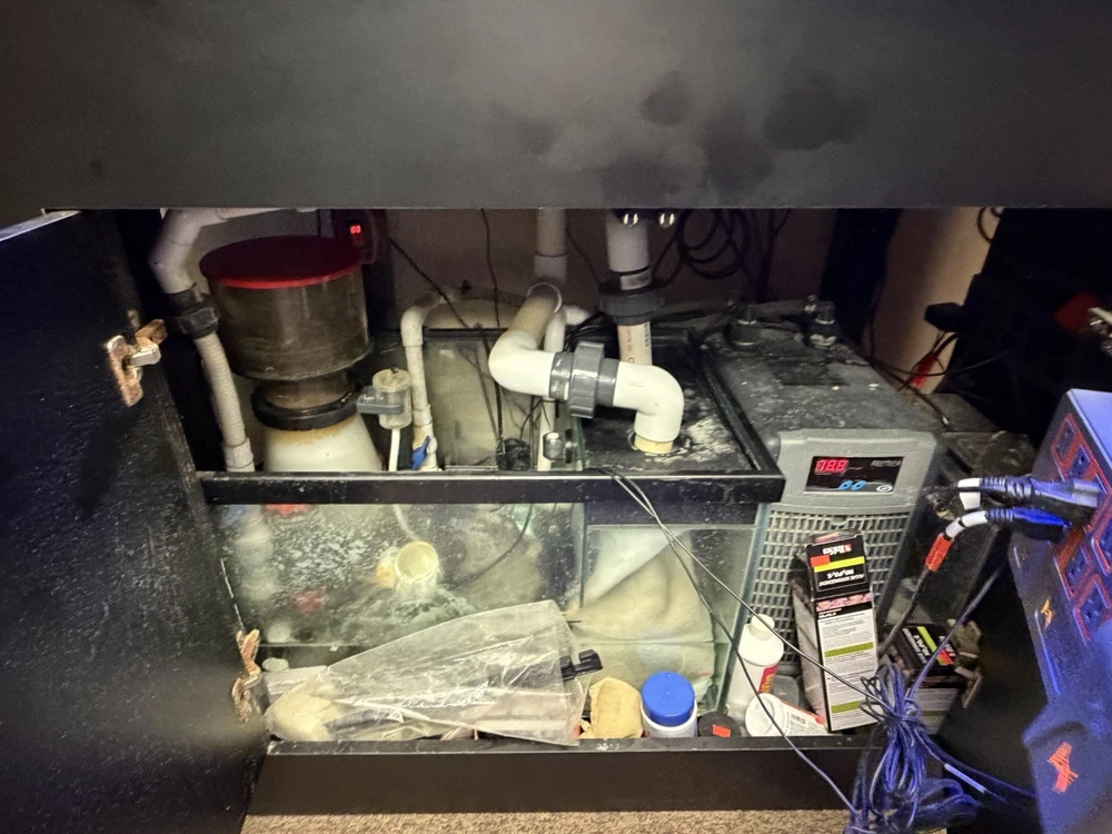 Custom 150-Gallon Reef Aquarium System For sale is a custom-built 150-gallon acrylic reef aquarium system. The tank sits on a sturdy black Formica stand with a matching canopy. The system includes a custom sump, large protein skimmer, aquarium chiller, and auto top-off system. Black Formica stand and canopy Custom sump Large protein skimmer Aquarium chiller Auto top-off system Perfect for a thriving reef setup. Top-notch equipment, custom-built for this tank. 💦🐠