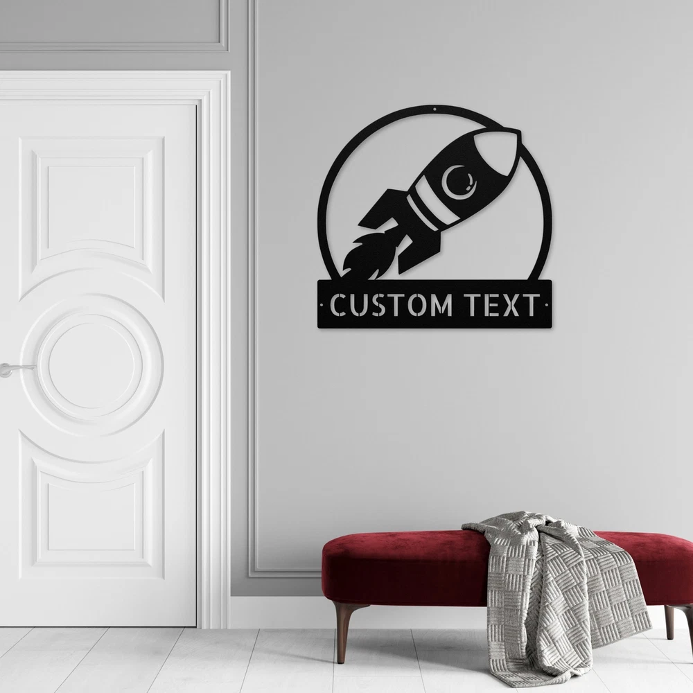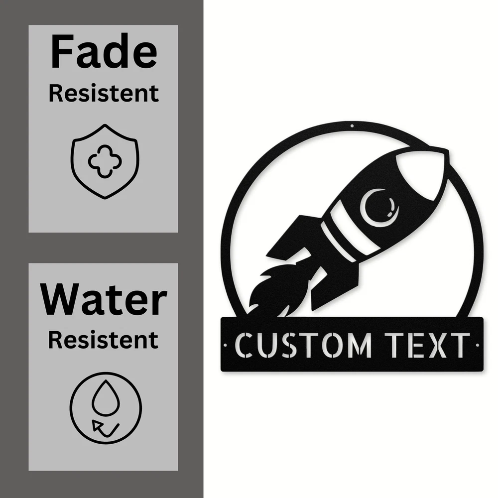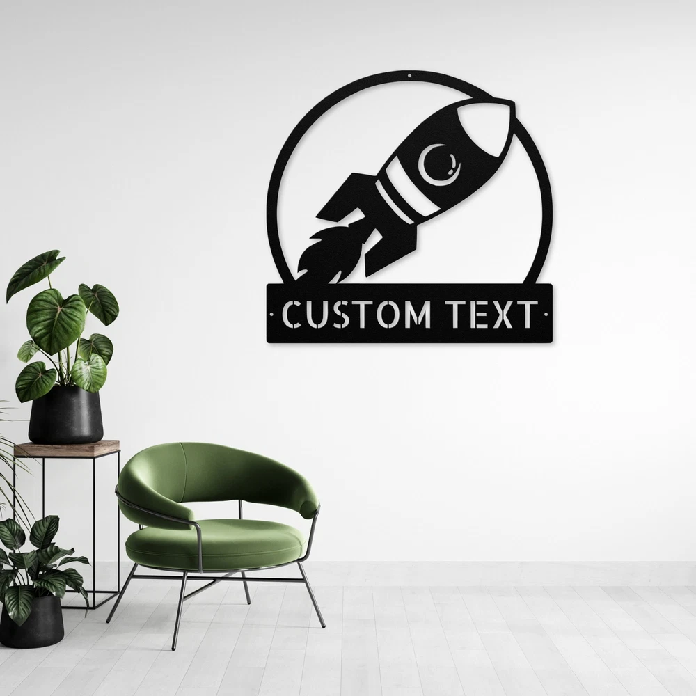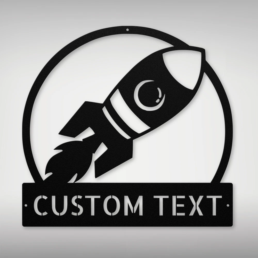 Product Description Custom Rocket Metal Sign - Unique Space Decor for Home or Office Blast off into style with our Custom Rocket Metal Sign ! This eye-catching sign is expertly crafted from high-quality 16 gauge metal, ensuring it’s built to last. With a durable powder coating, it’s designed to be dust, weather, and water-resistant, making it perfect for both indoor and outdoor use. You can personalize this sign to feature your name, a favorite phrase, or any custom text you desire, making it a fantastic addition to your home, office, or space-themed room. This sign also makes an amazing gift for birthdays, Christmas, or any special occasion for space enthusiasts and kids alike. Whether you’re looking to enhance your decor or surprise someone special, this custom sign will surely delight! Key Features: Customizable: Add your name, a special message, or a fun quote. Durable Material: Made from sturdy 16 gauge metal for long-lasting quality. Weather Resistant: Powder-coated finish protects against dust and moisture. Versatile Decor: Great for homes, offices, kids’ rooms, or outdoor spaces. Perfect Gift: Ideal for birthdays, Christmas, or any special occasion. Transform your space with the Custom Rocket Metal Sign today and let your personality shine! Service and Color Choice Our metal signs are designed to be personalized just for you, making them the perfect addition to any space! The default color for our signs is Black , but we also offer a variety of beautiful options including Copper, Gold, White, and Silver . After placing your order, simply contact us with your preferred color choice, and we'll ensure your sign is exactly how you envision it. Let’s create something special together!