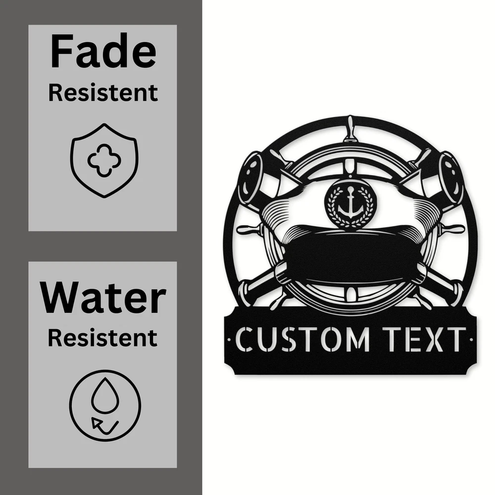 Product Description Custom Sailor Metal Wall Art Signs Personalized Sailing Home Decor Sign Gifts Celebrate the spirit of the sea with our Custom Sailor Cap Metal Sign ! This unique sign is perfect for anyone who loves the nautical lifestyle or wants to add a maritime touch to their home or office. Made from sturdy 16 gauge high-quality metal, this sign is built to last and withstand the elements. The powder-coated finish makes it dust, weather, and water-resistant, ensuring it looks great both indoors and outdoors. You can personalize the sign with a name, title, or any special message to make it truly one-of-a-kind. Whether it’s for a birthday, Christmas, or just because, this sign is a thoughtful gift for sailors, boating enthusiasts, or anyone who cherishes the ocean. Use the Custom Sailor Cap Metal Sign to decorate your home, office, or boat, showcasing your love for the sea in a stylish way. Key Features: Customizable: Personalize with a name, title, or special message. Durable Construction: Crafted from 16 gauge high-quality metal for longevity. Weather Resistant: Powder coating protects against dust, moisture, and fading. Versatile Decor: Ideal for homes, offices, or as nautical-themed gifts. Great Gift Choice: Perfect for birthdays, holidays, or any special occasion. Add a touch of nautical charm to your space with the Custom Sailor Cap Metal Sign ! Order yours today and make a splash in your decor! Service and Color Choice Our metal signs are designed to be personalized just for you, making them the perfect addition to any space! The default color for our signs is Black , but we also offer a variety of beautiful options including Copper, Gold, White, and Silver . After placing your order, simply contact us with your preferred color choice, and we'll ensure your sign is exactly how you envision it. Let’s create something special together!