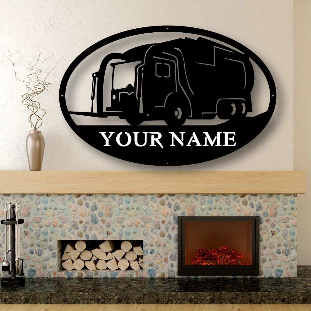 Custom US Front Garbage Truck Driver Metal Wall Art Gift Sign