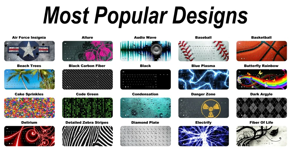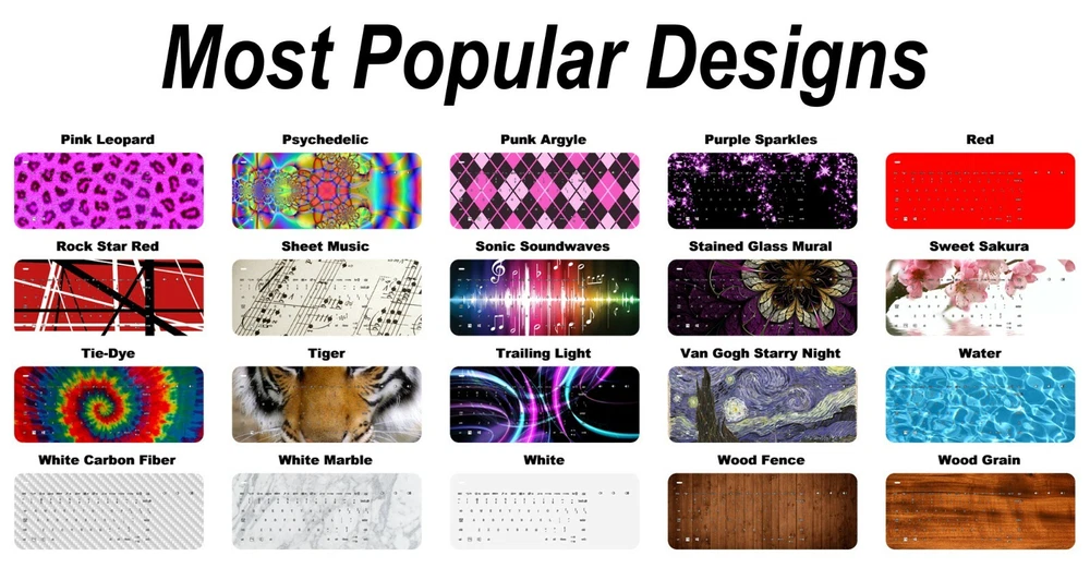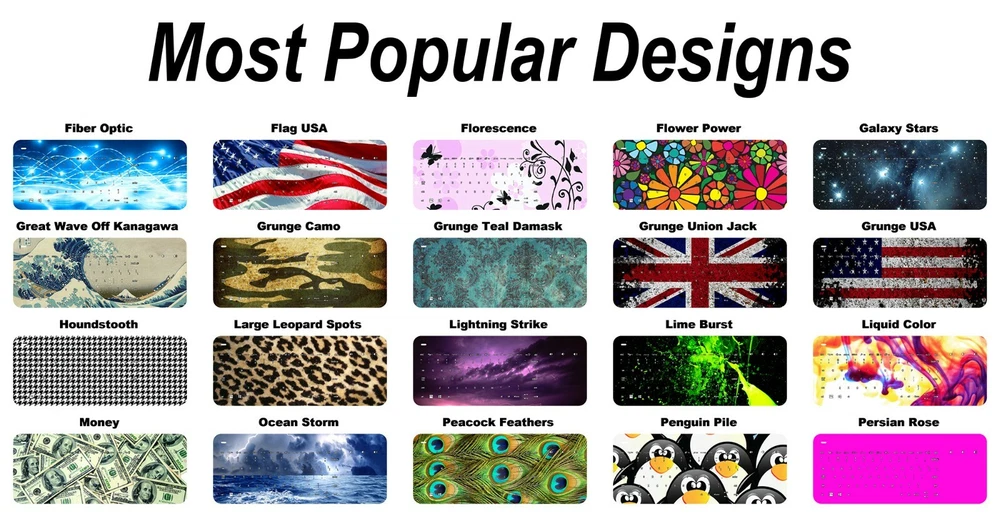 VinylSkins Free US Shipping! International Shipping Charges Apply Customize your keyboard with a skin from VinylSkins! With this listing you can choose any 1 design you'd like for your K400 Plus. Personalization is available on any skin which can include using your own image, business logo and custom text. Contact us prior to ordering to see a preview of what we can do. Skin does not fit the non-plus version Our skins are made on large format professional printers and plotters from high-quality vinyl. Our adhesive allows the skin to be removable and repositionable during installation and then sticks strongly afterward. We use UV resistant inks and apply an additional UV resistant, scratch resistant, glossy laminate. This will ensure that your skins will look great for many years to come. The adhesive is quite strong but will allow the skin to come off in one piece and will not leave any residue behind or damage your device. This skin covers the parts shown in the preview image. This listing is for vinyl skin only, Keyboard not included. FAQ: Q: How will I know if this skin fits my device? A: The skins are usually specific to one model number of device so make sure that your model number is exactly the same as the one in the listing title. You can also check the preview image and look at where the cutouts are. If your device should have a logo cutout somewhere and the preview image does not show that cutout then the skin may not be for your device. Q: How long does it take to make an item? A: If you do not need any personalization we will have your item shipped in 1 business day. Personalization can delay shipping 1-2 business days so make sure that if you want a custom item you stay in contact with us while we get the design set up. Q: How long does shipping take within the USA? A: Standard free shipping is USPS First-Class 3-5 day. We offer USPS Priority 2-3 day and Priority Express Overnight for a fee. Overnight orders still require a 1 business day lead time to create your item. Q: Do you ship outside of the USA? A: We ship worldwide, shipping charges are shown at checkout. Our standard shipping method is USPS First-Class International 7-14 day service with tracking. We also offer USPS International Priority 6-10 day service. Q: Do the skins come off easily and are they reusable? A: They stick very well and will not come off on their own but once you start peeling it up the skin will come off in 1 piece. Once a skin is removed it cannot be applied again, they are 1 time use. Q: How long do the skins last? A: A very long time. We?ve had a skin on a game console for over 6 years and it still looked great the day we changed designs. Q: How does personalization work? A: If you only want some text added to a skin send us a message with your order telling us what you want the text to say, the text color, font and position. If you don?t choose a color, font and positioning for the text we'll choose what we think looks best. Text can be added to any skin at no additional charge. We'll print it EXACTLY as you send it to us so be sure to check for spelling errors. Q: Can I send my own images to be printed into a skin? A: Yes you can! Please contact us with your image before you place your order and we'll send you a preview of how the skin will look. Images should be a minimum resolution of 800x800 to ensure a sharp print but smaller images may work. *** Custom Images usually result in a delay of 1-2 business days *** Q: I have an idea for a design but I don?t have an image. Can you design something for me? A: If you have an idea feel free to contact us with the specifics. We do have graphic artists who are available to help create some basic designs. Q: Can I get my skin without the glossy finish? A: Yes, we offer matte finish by request. Let us know in the "personalization" box when placing your order. Q: What is your return policy? A: Buyer is responsible for return shipping unless there is a defect with the product. We ask that you contact us within 7 days of receiving your item with any issues. Contact us for the return address and to resolve any issue that you have with your product. Feel free to contact us with any questions, we?re happy to help!