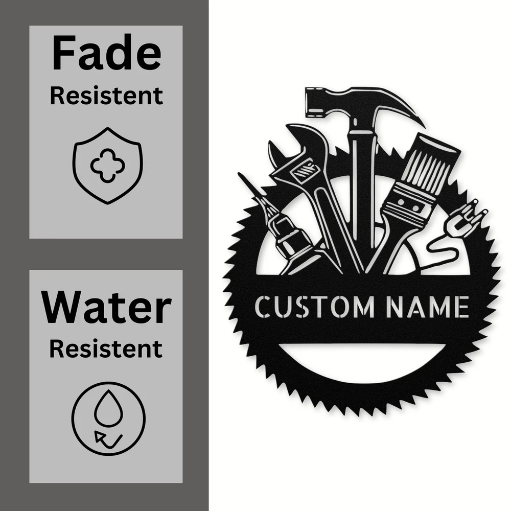 Product Description Custom Workshop Tools Metal Sign - Personalized Decor for DIY Lovers Transform your workspace with the Custom Workshop Tools Metal Sign . Made from 16 gauge high-quality metal, this sign is built to last and withstand the test of time. The durable powder coating ensures it is dust, weather, and water-resistant, making it suitable for both indoor and outdoor use. Whether you’re a DIY enthusiast, a professional tradesperson, or just someone who loves to tinker, this sign is perfect for adding a personal touch to your workshop or garage. You can customize it with your name, a special date, or a unique message, making it an ideal gift for Christmas, birthdays, or any special occasion. The Custom Workshop Tools Metal Sign not only enhances your workspace but also serves as a great conversation starter, showcasing your passion for tools and craftsmanship. Key Features: Customizable Design: Personalize with your name, a special date, or a fun message. Durable Material: Crafted from 16 gauge high-quality metal for long-lasting use. Weather-Resistant: Powder-coated finish protects against dust, moisture, and fading. Versatile Decoration: Ideal for workshops, garages, or home offices. Great Gift Option: Perfect for DIY lovers, craftsmen, and anyone who enjoys working with tools. Elevate your space with the Custom Workshop Tools Metal Sign and show off your love for crafting and creation! Service and Color Choice Our metal signs are designed to be personalized just for you, making them the perfect addition to any space! The default color for our signs is Black , but we also offer a variety of beautiful options including Copper, Gold, White, and Silver . After placing your order, simply contact us with your preferred color choice, and we'll ensure your sign is exactly how you envision it. Let’s create something special together!
