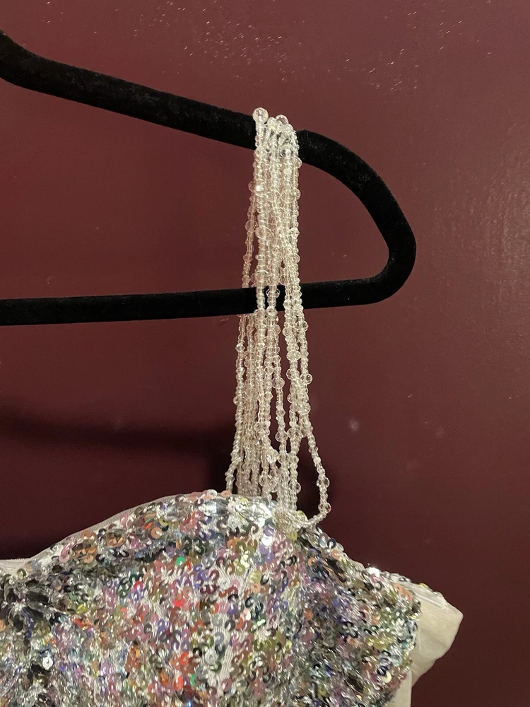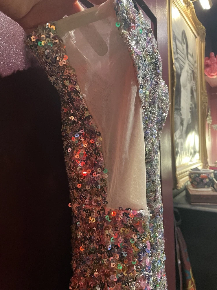 Custom made NWT sequin pinup fit and flare dress size 1X Stunning brand new custom made sequin dress from SheisMeDress features: Beaded straps (some strands are longer to cascade on shoulder purposely) Boning in bodice Soft lining Gel inner line to keep dress in place Mesh paneling Size 1X