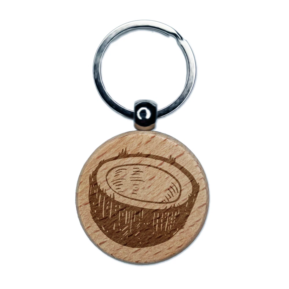 Cut Open Coconut Engraved Wood Round Keychain Tag Charm