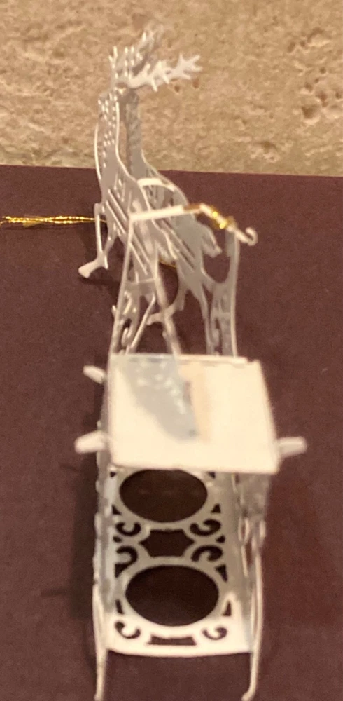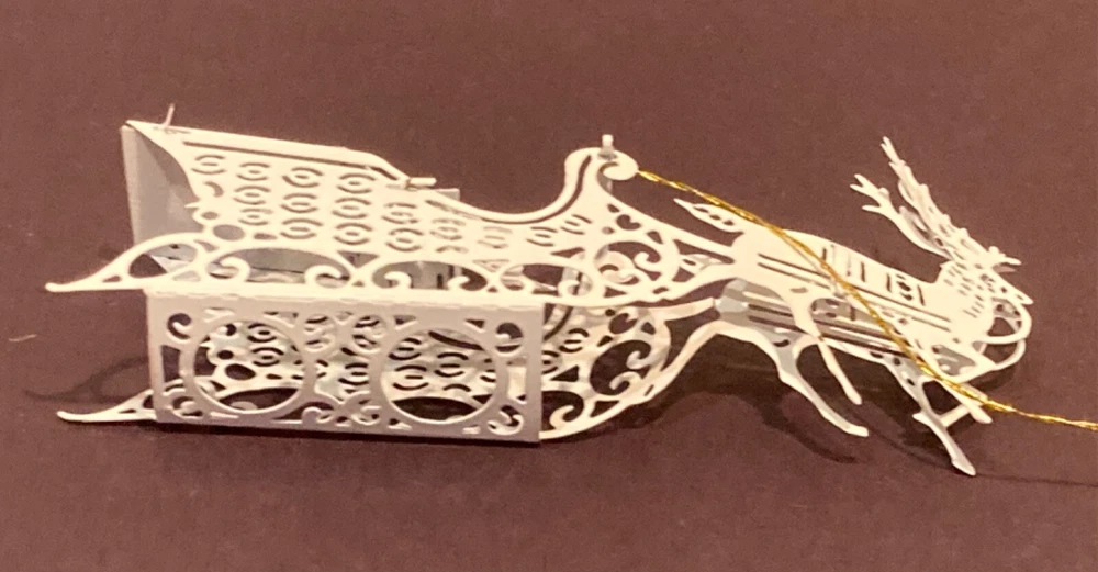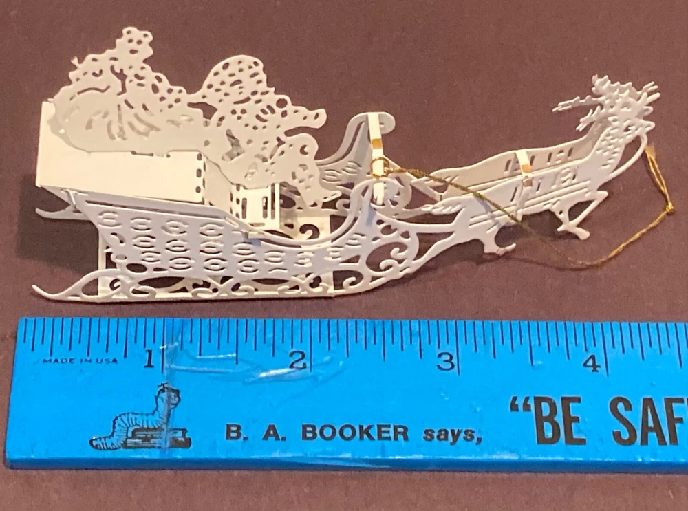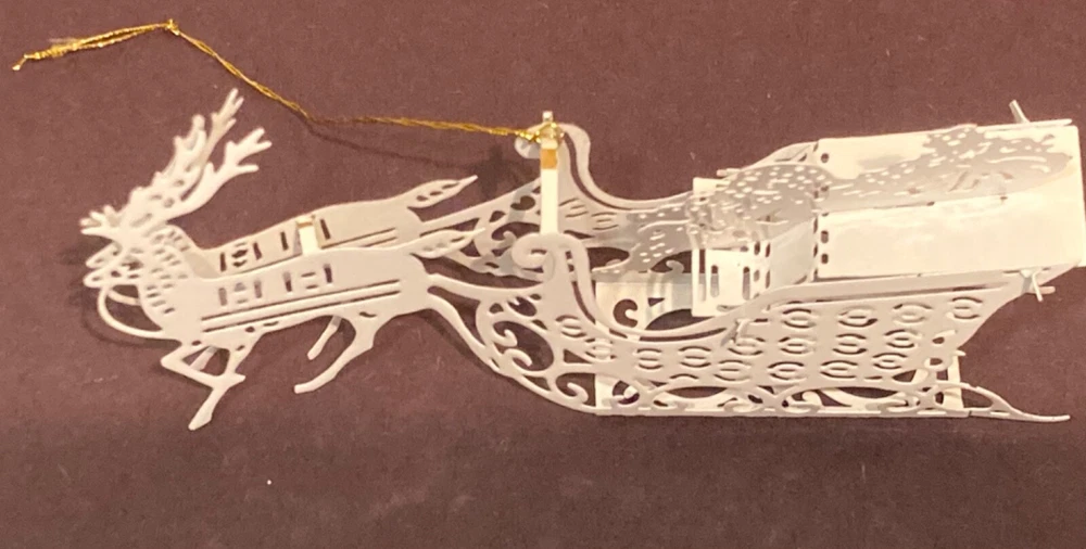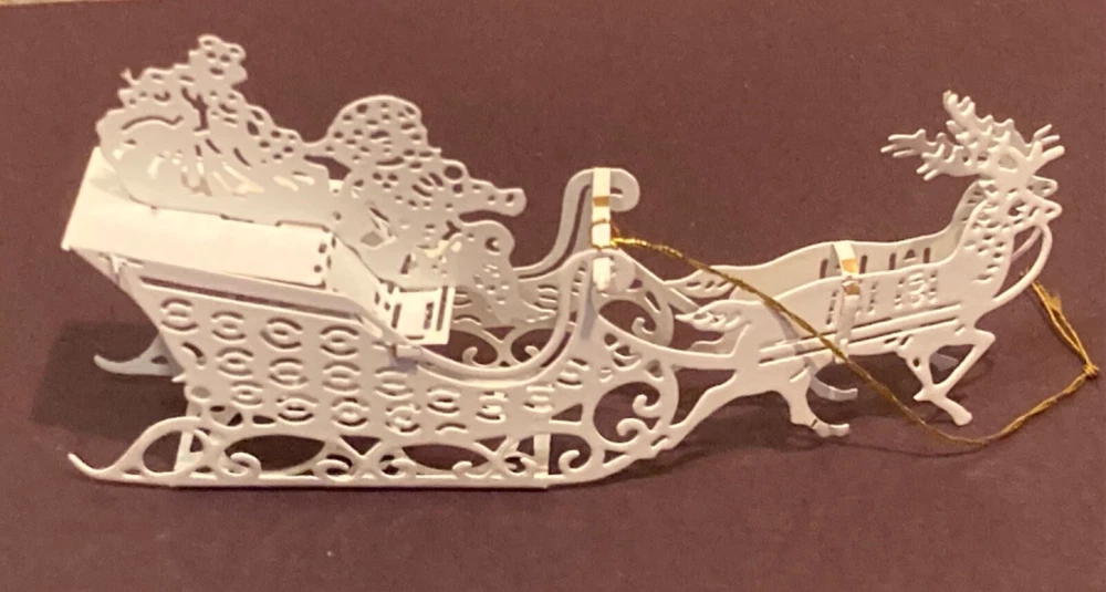 Crafted with a whimsical yet minimalist aesthetic, this unbranded Cut Out Metal White Santa Sleigh and Reindeer Ornament brings a touch of festive charm to any space. The design showcases a sleek silhouette of Santa and his reindeer. Ideal for Christmas enthusiasts who appreciate understated elegance, ensuring it can grace your tree or mantel for seasons to come. Its versatile theme seamlessly integrates with your existing Christmas decorations, creating a harmonious and joyful holiday ambiance.