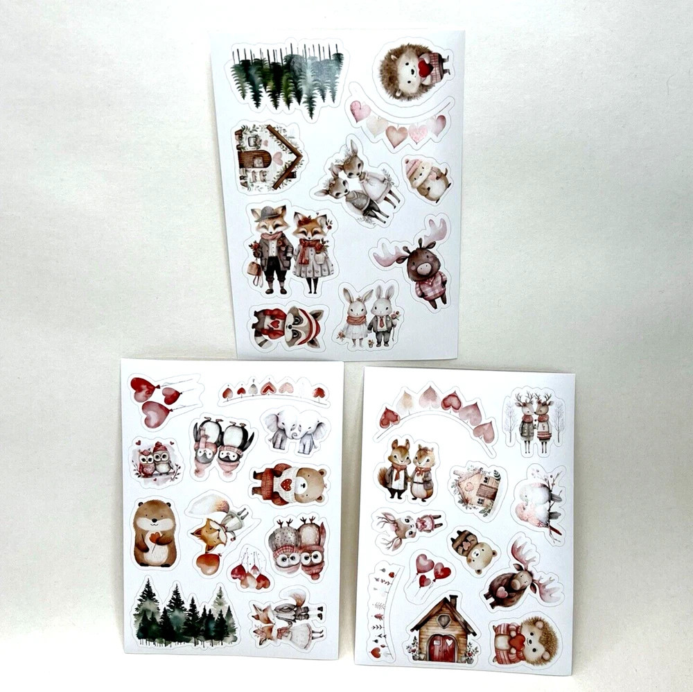 Cute animal Valentine stickers. 3 sheets. The sheets measure approx. 5 1/2 x 4 inches. These are a flat paper sticker. I have more stickers, washi tape and paper for sale. I do combine shipping. Please put all the items you want to purchase in ONE cart and then pay. I will refund you the difference in shipping after shipping label is printed. Let me know if you have any questions through eBay messaging. Thank you for stopping by!