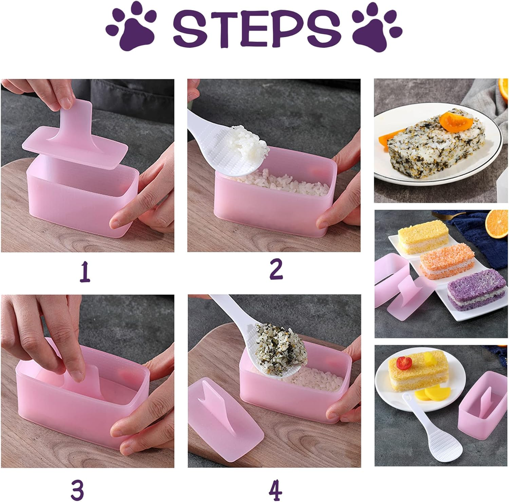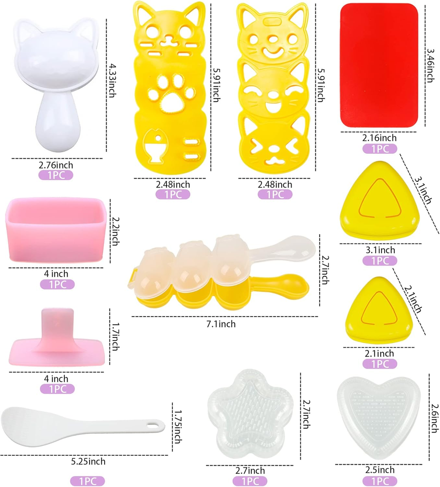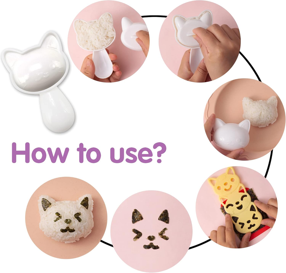 Package: Total of 13pcs, 5pcs cat rice molds, 1pc pad, 1pc musubi maker press sushi rice mold, 2pcs triangle onigiri molds in different sizes, 1pc plum blossom mold, 1pc heart-shaped sushi mold, 1pc rice ball mold shaker, equipped with 1pc rice paddle, which will help you make various shapes of sushi and enjoy delicious sushi. Enough quantity and various styles for you to choose! All molds are made of high-quality PP material, special surface with nonstick material ensures the rice doesn't stick to the mold, and It's easy to clean. Advantage: These sushi molds have different styles to choose from, such as rectangle, triangle, heart-shaped etc. You can use it to prepare a delicious and beautiful lunch for your kids and bring a happy meal to your family. The cat rice ball mold also can be rearranged to create many fun shapes. Easy to use: Scoop rice into the sushi maker rice mold, press it to make it flatten, pop out your rice gently from the mold, then you can have perfect sushi. and we have attached the operation on the box of our products too,you will handle it very well and fast. Widely Used: By using this set of onigiri molds, you can prepare delicious homemade food for your family and friends. It is also suitable for your production of sushi restaurants, Japanese cuisine, home kitchen, picnics, lunches, parties, etc. I believe that this will leave you an unforgettable memory. Product Description