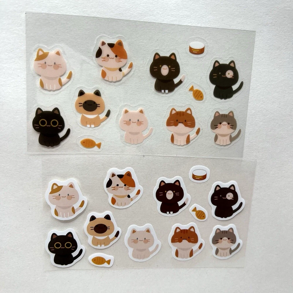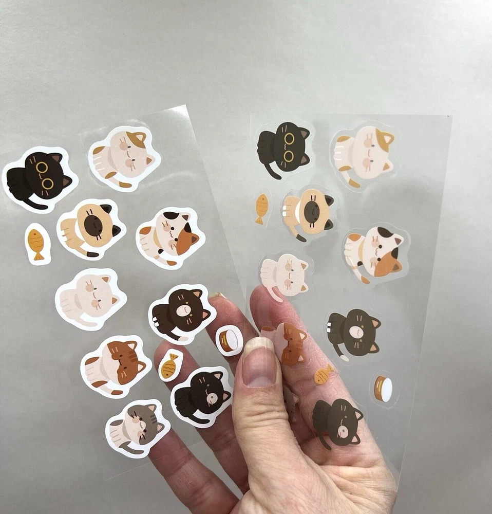 2 sticker sheets. One sheet has paper stickers and the other is PET (Images printed on PET (clear flexible plastic with a clear peel off backing.) The sticker sheets measure approx. 4 3/4 x 2 3/4 inches. I have more stickers, washi tape and paper for sale. I do combine shipping. P lease put all the items you would like to purchase in ONE cart and then pay. I will refund you the difference in shipping after shipping label is printed. Let me know if you have any questions through eBay messaging. Thank you for stopping by!