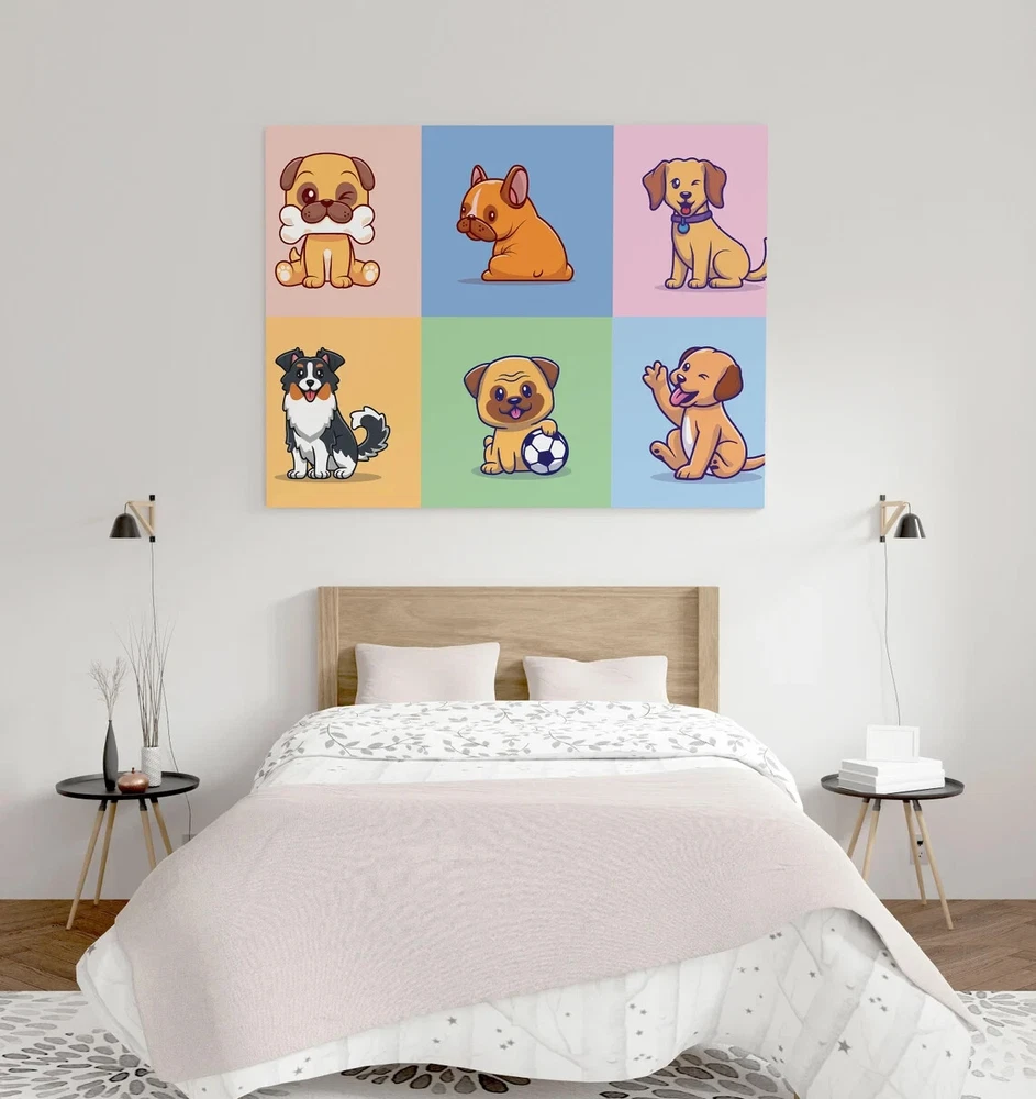 Cute Dogs Colorful Pet Abstract Paints Unframed Canvas Print Australian Wall Art