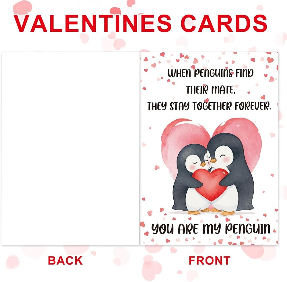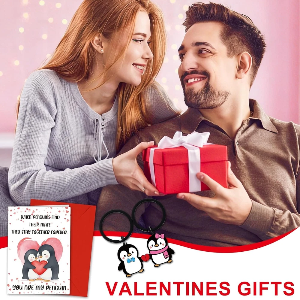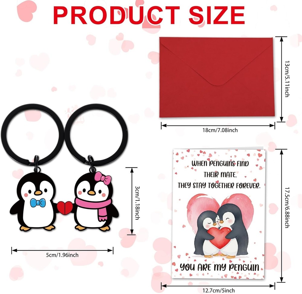 Cute Penguin Valentines Day Cards for Him Her, Anniversary Card with Keychain Valentines Day Gifts You Are My Penguin, Romantic Valentine'S Greeting Cards for Husband Wife Boyfriend Girlfriend ⭐️⭐️⭐️⭐️⭐️ Description Color Penguin Manufacturer Part Number A050985 Item Weight 1.44 ounces Size A5 or 5x7 inches Package Dimensions 7.17 x 5.2 x 0.43 inches Heart Message: Celebrate love with this penguin valentine card designed to share warm emotions and real connection. Paired with the keychain, it turns a simple gift into a sweet moment that makes your partner feel valued and truly seen Gift Ready: This card-and-keychain set arrives ready to delight your husband, wife, boyfriend, or girlfriend. As a thoughtful valentines day card, it adds charm to anniversaries or daily surprises, creating warm, memorable moments together Easy Personalization: Designed with ample blank space, this valentines day card for him or her lets you write a message that feels real and intimate. Your handwriting deepens emotional connection, turning simple words into something meaningful Charming Design: A sweet penguin theme brings playful romance to your celebration. This animal valentine's day card adds lighthearted fun while expressing affection, perfect for couples who enjoy warm, tender, and joyful shared moments Memorable Moments: Ideal for anniversaries or a funny valentines card for him, this set helps you express gratitude with joy. The keychain becomes a daily love reminder, while the card preserves a meaningful moment you both will cherish Product description