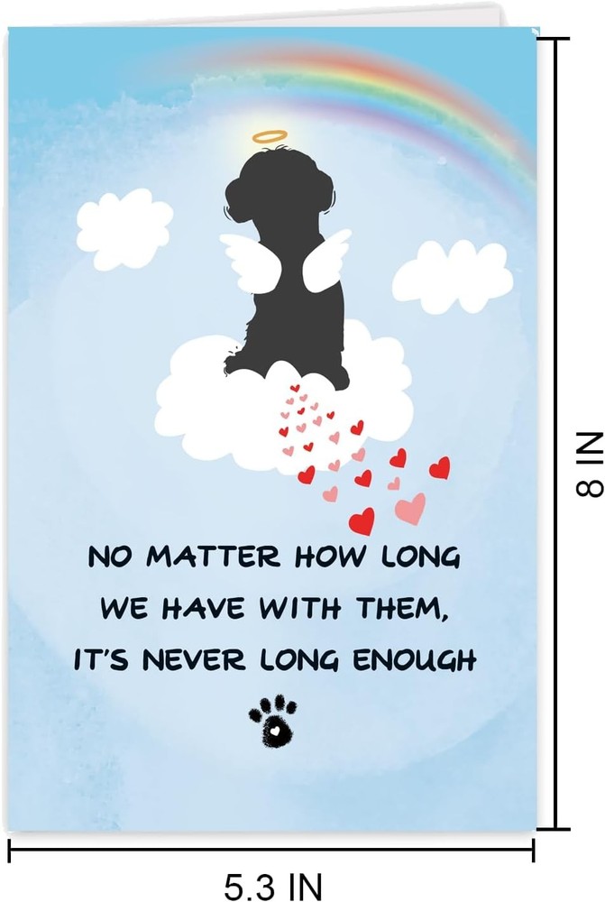 Doggy Bereavement Condolences Card: Dogs are our good friends. When others lose their beloved companions, care for them with a warm card. At any meaningful time, you can give this card to someone close to you. NO INK SMUDGES: There is nothing worse than writing inside a card to find that the shiny surface makes the ink smudge. This is why we use a high-quality one-sided coated board. The uncoated side will absorb more of the ink from your pen to make smudging a thing of the past. BLANK ON THE INSIDE to allow you to write your very own message. The unique fun design is printed on a specially sourced and environmentally responsible board. At 360 microns thick and 300gsm, the natural white embossed paper board has a quality look and feel. Product Size: 8 x 5.3 x 0.1 inches. Printed on quality 300gsm linen card stock, this card stock is high quality, and the print quality is excellent, featuring a matching yellow elegant envelope to keep your card away from dust, oily fingerprints, or curious eyes! Size description: 8 x 5.3 x 0.1 inches.