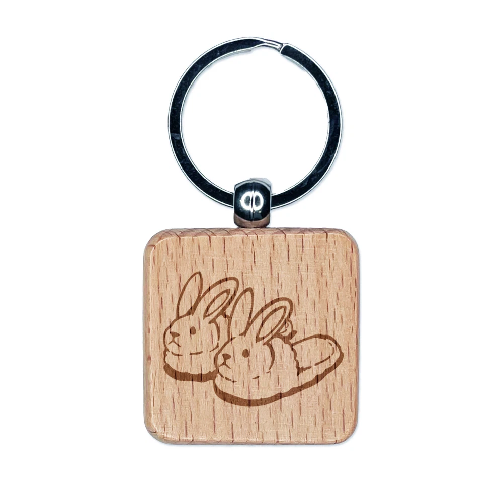 Cute and Fluffy Bunny Slippers Engraved Wood Square Keychain Tag Charm