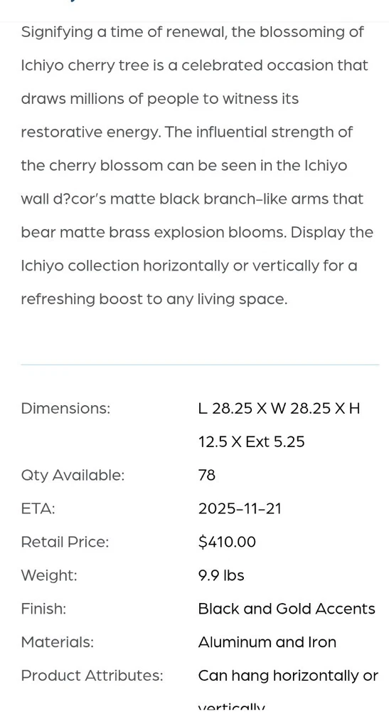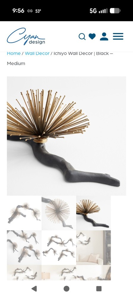 Cyan Design NWT Black/Gold Ichiyo Blooming Cherry Tree Wall Art $410