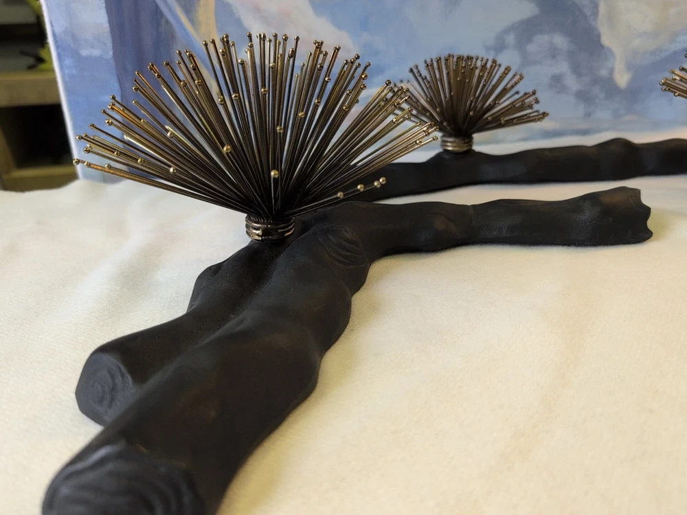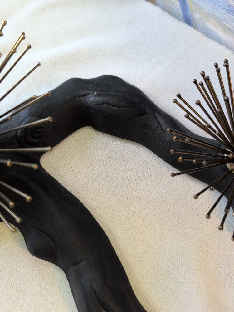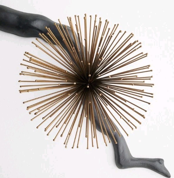 Orientation: Both Personalize: No Theme: Art Material: Metal Type: Dimensional Wall Sculpture Item Height: 15 in Item Weight: 8 lb Color: Black UPC: Does not apply gtin13: Does not apply Style: Minimalist Item Length: 27" Vintage: No Room: Any Room Brand: Cyan Designs