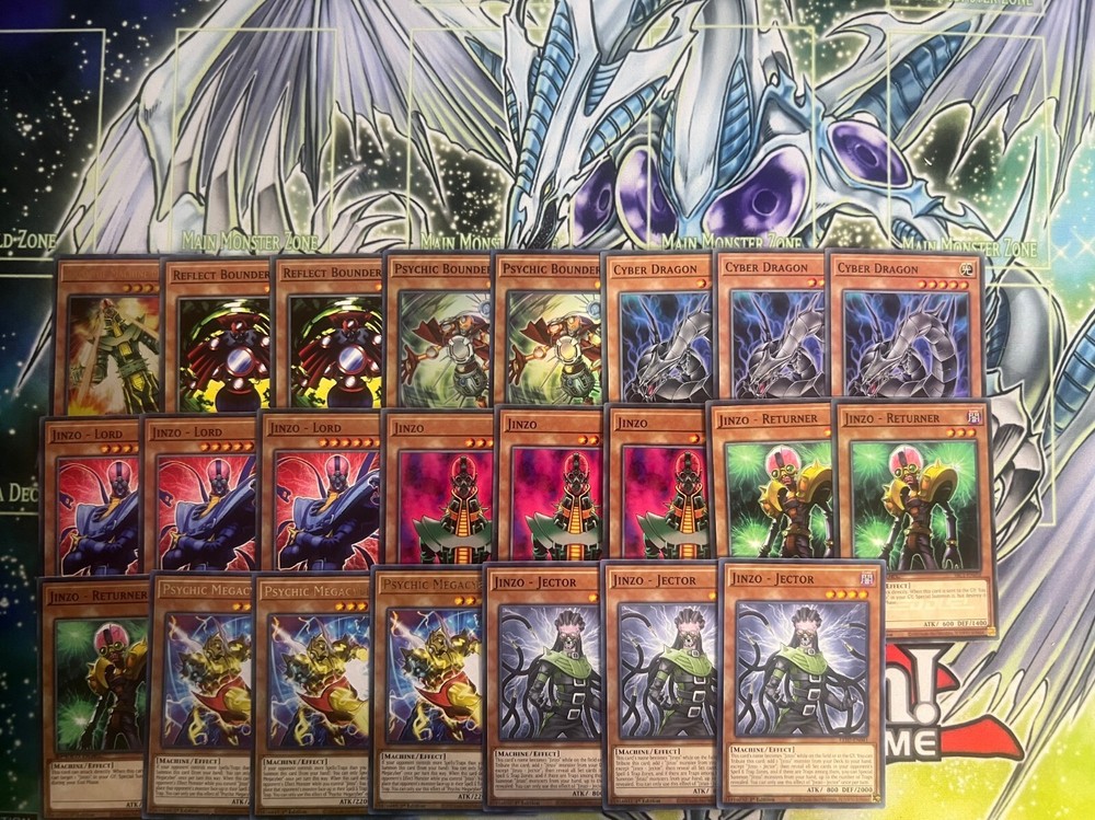 Hello! You are purchasing the deck list below, the cards will be English, real, and near mint to light play condition at worst. All decks are built with the lowest rarities for cards in mind to keep the price of the deck low and affordable for all duelists! Some cards may be in speed duel printing if this is the cheapest available copy of the card, but do not worry these are real cards and legal for tournament use! Purchase with confidence and safety! As an added bonus one pack of card sleeves will be included with your deck! Thanks again and good luck dueling! Now here's the decklist; Monsters: 1| Jinzo The Machine Menace 2| Psychic Bounder 2| Reflect Bounder 3| Jinzo - Jector 3| Psychic Megacyber 3| Jinzo - Returner 3| Jinzo 3| Jinzo - Lord 3| Cyber Dragon Spells; 1| Cosmos Channelling 1| Mind Control 1| Factory of 100 Machines 2| Everlasting Alloy 2| Cyber Energy Shock 3| Mystical Space Typhoon 3| Amplifier 3| Book of Moon 3| Limiter Removal 3| Brain Control Traps: 3| Call of the Haunted 3| Psychic Shockwave
