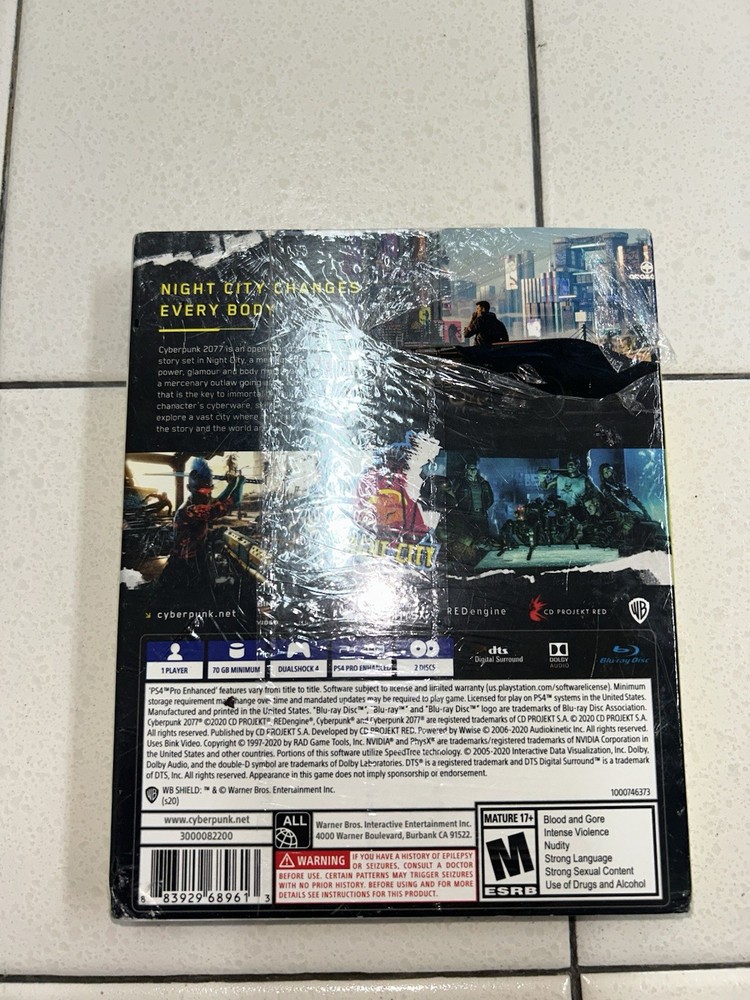 The product is a brand new sealed copy of the video game Cyberpunk 2077 for the Sony PlayStation 4 and PlayStation 5 consoles. Published by Warner Bros. Games, the game is rated M for Mature due to its content. Set in a cyberpunk world, players can expect an immersive experience filled with action, storytelling, and customization options. The game offers an open-world gameplay environment where players can explore and interact with various characters and factions in a gritty sci-fi setting.
