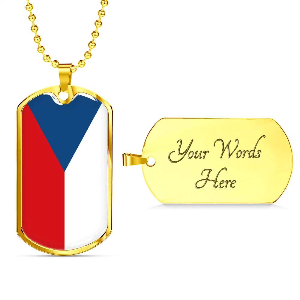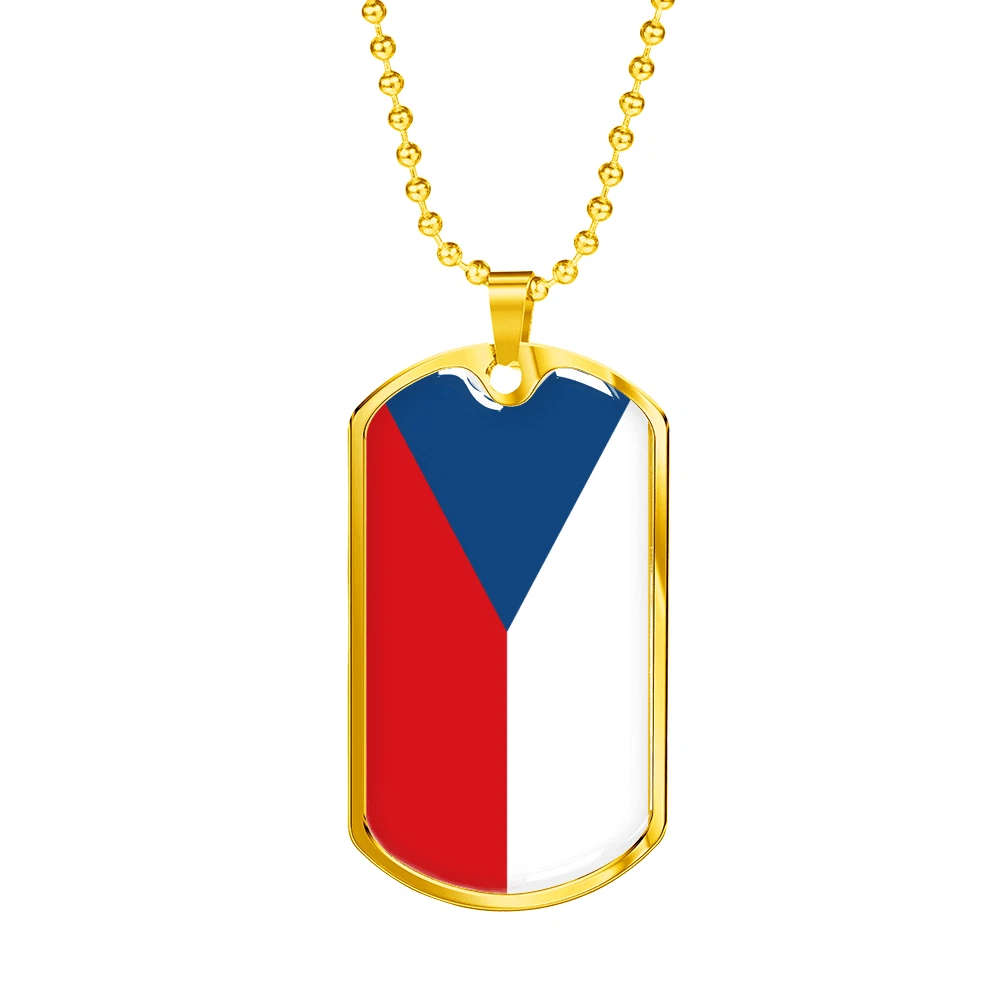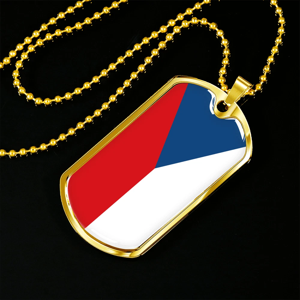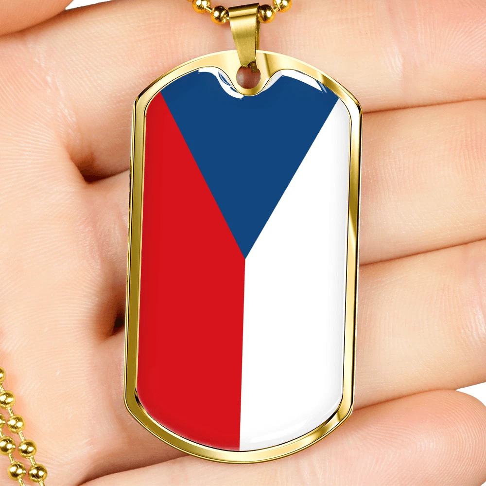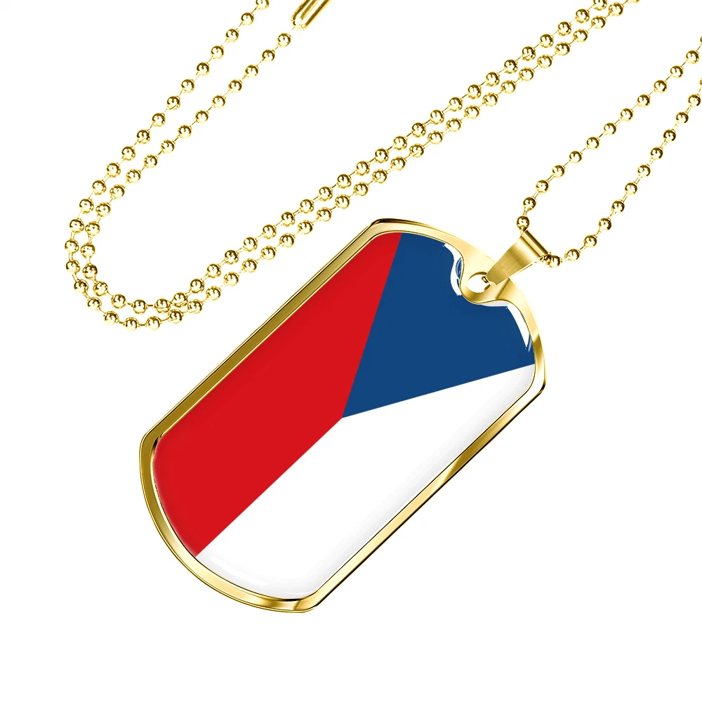 Czechia Flag Necklace Stainless Steel or 18k Gold Dog Tag 24" Chain