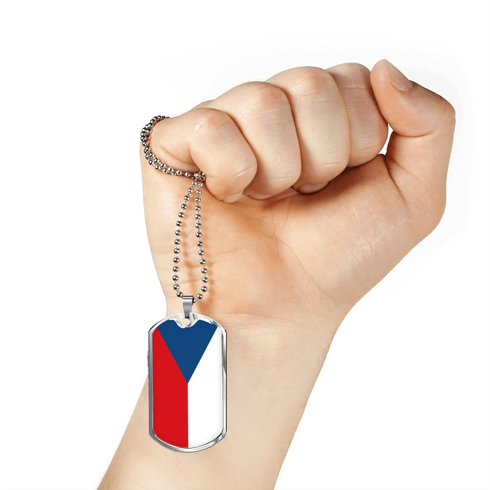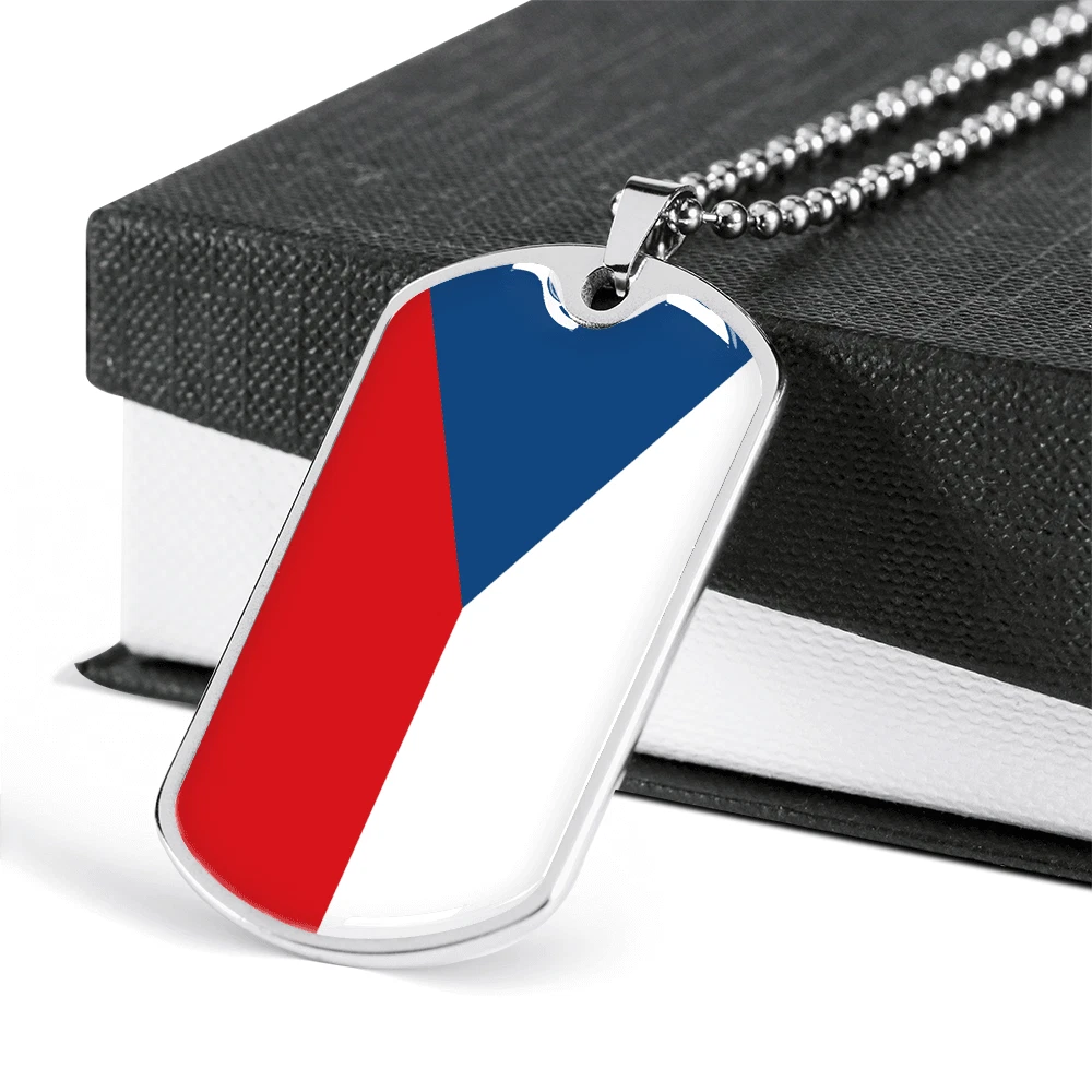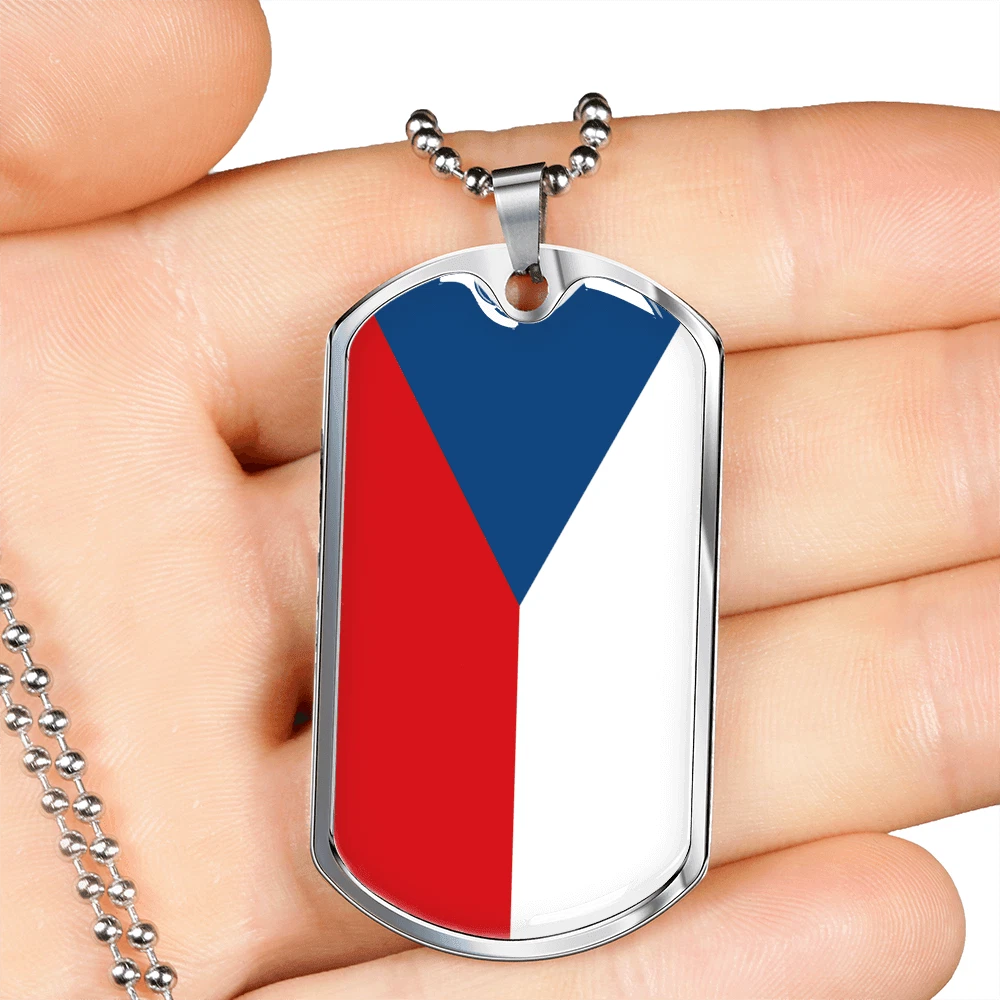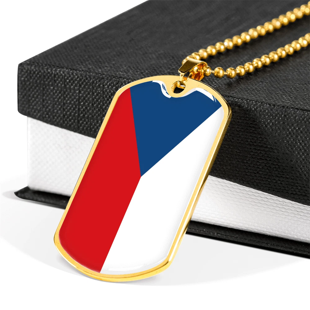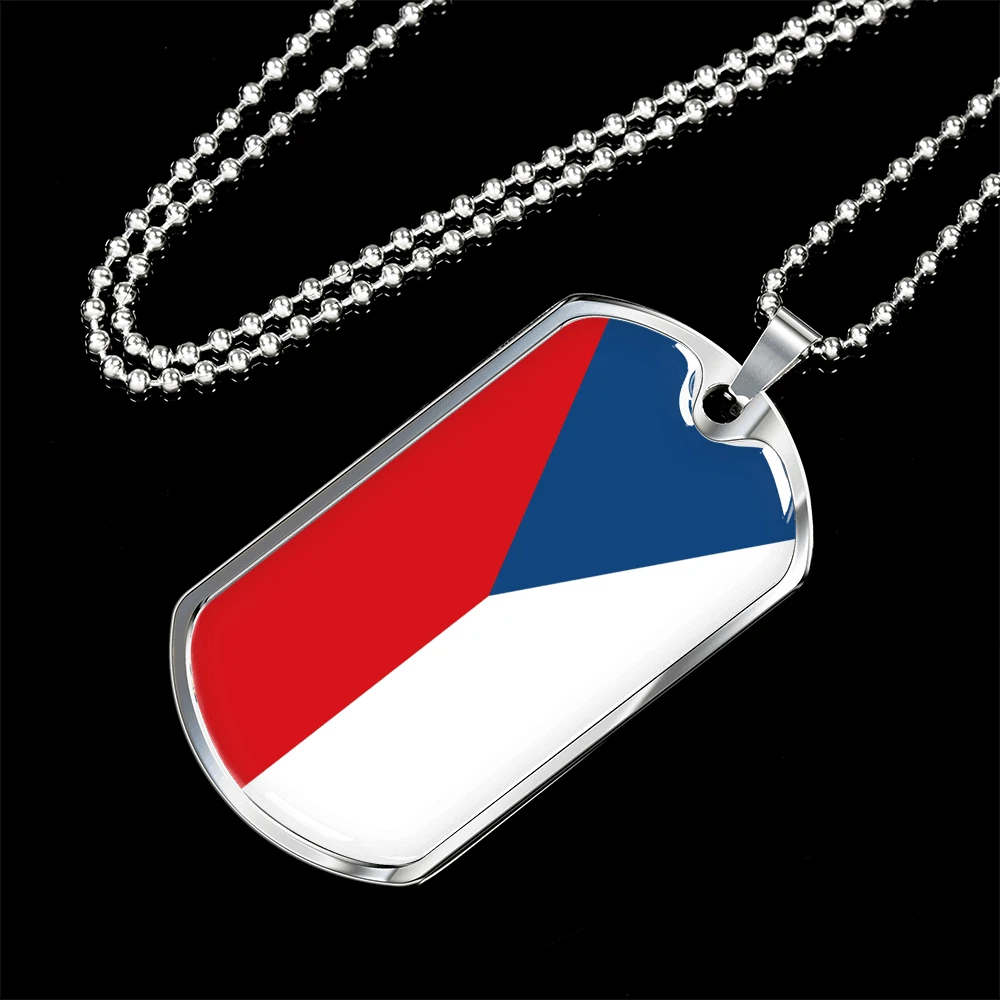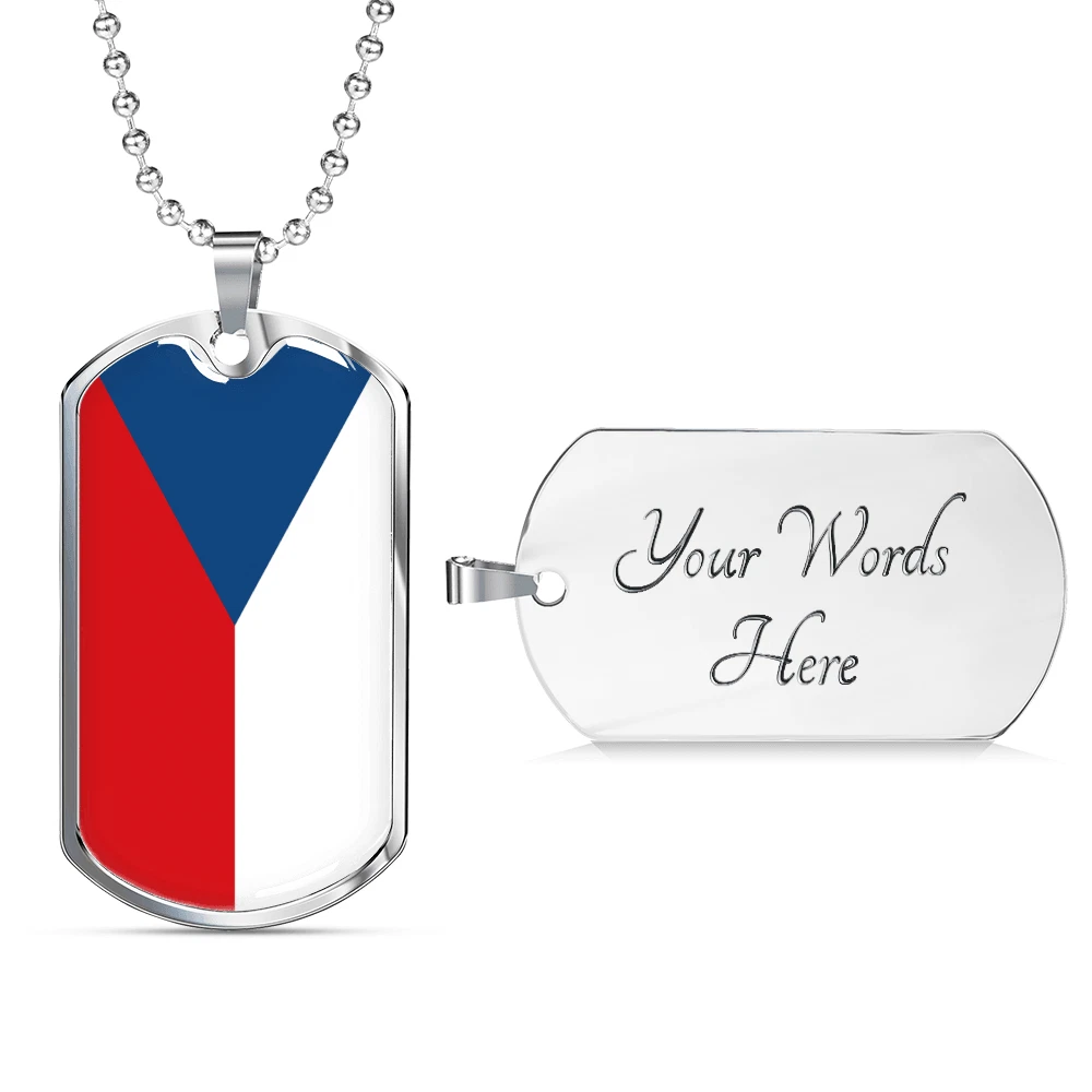 Czechia Flag Necklace Stainless Steel or 18k Gold Dog Tag 24" Chain