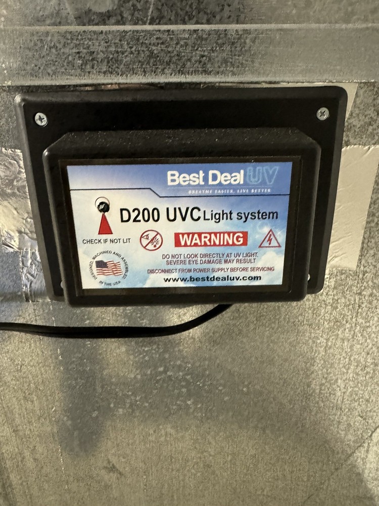 ***NEW IN BOX. Never used.*** Description D200 Aluminum Dual Air cleanser for AC/HVAC The D200 Air cleanser is designed to keep the HVAC coil/duct clean. OUR PRODUCTS: STERILIZE DEODORIZES PURIFIES THE AIR JUST BECAUSE YOU DON’T SEE IT DOESN’T MEAN YOU DON’T BREATHE IT! This product is made to last for a lifetime Desgined in the USA 30 Days money back guarantee! 1 YEAR WARRANTY NOT INCLUDING THE BULB All our units has an electronic ballast and has a sight glass to see if unit is on. All Our bulbs are germicidal UVC and put out 253.7NM Which means that they are 99% efficent on a single pass. Installation is very easy 15 min, just cut 2 holes of 1 inch in your duct-work (template included) slip the lamp inside and attach the screws and the aluminum strips (included in box), then simply plug it in, 10 ft cord. Product Specifications Dimension in duct: 8 ″ Overall Dimensions: 7.5 ″ x 5.5 ″ x 8 ″ Power 120 vac 50-60Hz 0.23A Max, Two bulbs 9W each Lamp Life: 12,000 hours continuous operation This product is very easy to install; instructions are included.