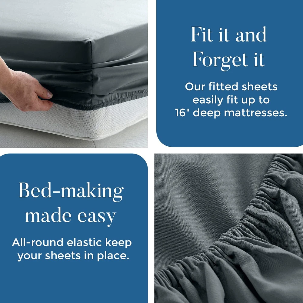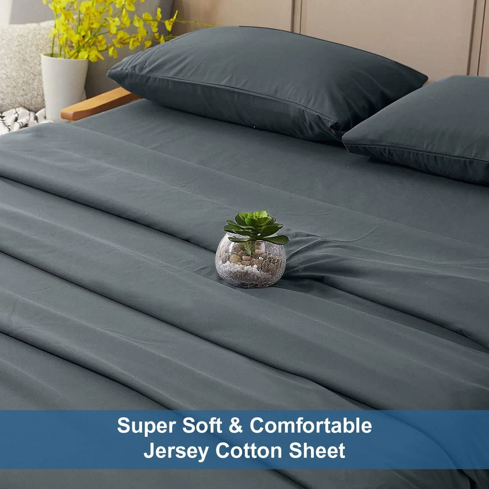β πππππ πππ π & ππππ ππππππ πππππ πππ: This jersey knit sheets feel just like your favorite t-shirt. The cotton jersey fabric is warm, soft, flexible, and breathable for maximum sleep comfort. Each Dan River California King jersey bed sheet set comes with 145 GSM, 1 (78x84 inch) elastic fitted sheet, 1 (108x102 inch) flat sheet and 2 (20x40 inch) pillowcases. Choose from a variety of beautiful solid colors. β πππππππ ππππ-ππππππ ππππππ: Our deep pocket California King sheet set are designed to accommodate modern, thicker mattresses with a generous 16-inch deep pocket. This ensures a secure and snug fit, making them suitable for a variety of mattress sizes. No more struggling to get your sheets to stay in place. Each Dan River California King size sheets set includes 1 (78x84 inch) elastic fitted sheet, 1 (108x102 inch) flat sheet and 2 (20x40 inch) pillowcases. β πππππππ πππππ ππππππ: Elevate the aesthetics of your bedroom with a range of beautiful solid colors including: Black, Brown, Burgundy, Dark Gray, Hunter Green, Light Blue, Light Gray, Navy, Pink, & White. Whether you prefer classic neutrals or vibrant hues, our Sheet Sets available in versatile sizes: Sheet Set-King, Queen, Full, California King, Twin XL & Twin which shall be a stylish addition to your bedding collection. β π πππππ πππ ππππ ππππ: Looking for the perfect gift for any occasion? Look no further! Treat yourself or a loved one to this wonderful idea for Christmas, Thanksgiving, Anniversaries, birthdays. Still, Looking for a reason to buy? You can always gift it to yourself for that joyous-Looking home and bedrooms! Rest assured that your gift is also environmentally and socially conscious as all our products are certified by OEKO-TEX STANDARD 100 CERTIFIED. β ππππ ππππππππππππ: Our jersey Sheet Set is durable and machine washable. When washing make sure to follow these rules carefully: Set the machine to wash in warm (not hot) water on a gentle/delicate cycle with a cold-water rinse. Use a mild detergent that does not contain any bleaching agents such as chlorine or peroxide.