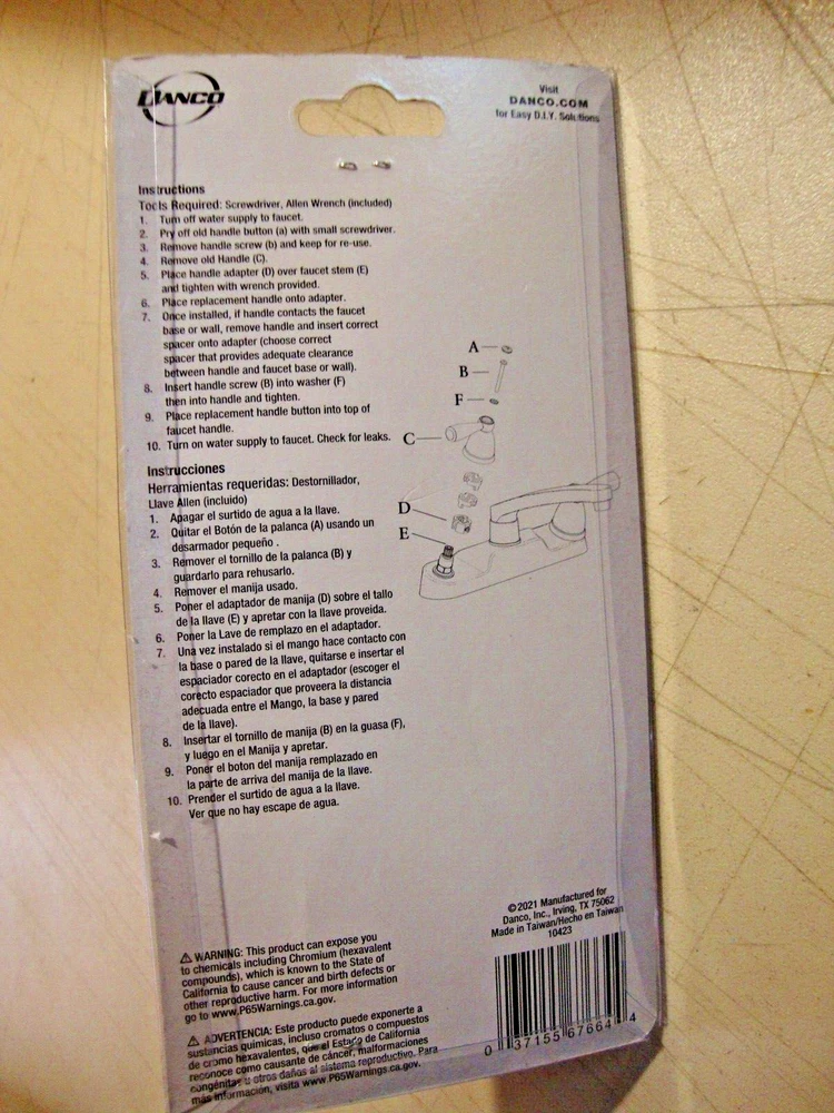 DANCO Decorative Lever Handle Chrome 10423 Diverter Hot Cold 1 Day Shipping