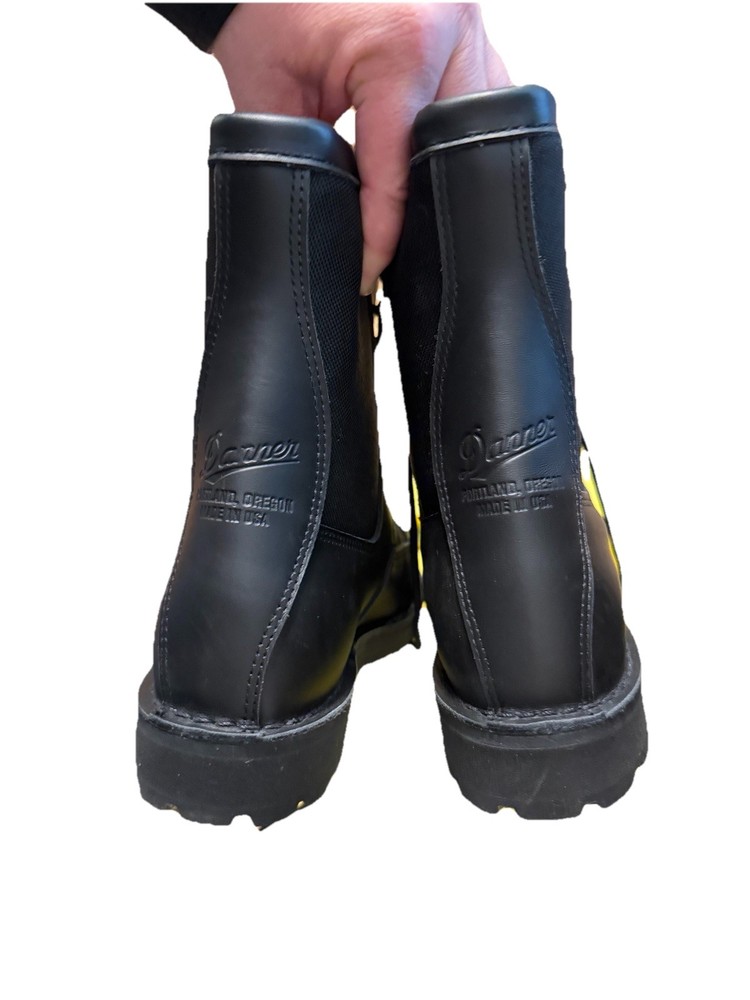 The DANNER Acadia Size 11.5 Black Soft Toe Gore-Tex 8" Men Boot 22601 is a rugged and reliable boot designed for various occasions such as travel, activewear, workwear, and business. Made with a durable leather and nylon upper material, this military-style boot features a round toe shape and lace-up closure. The signature Gore-Tex waterproof lining ensures protection against outdoor elements, making it ideal for summer, fall, and spring seasons. With a Vibram 148 Kletterlift Rubber Outsole providing traction and support, these boots are both functional and stylish, reflecting the Danner brand's commitment to quality craftsmanship. USMC, Law Enforcement, Military boot