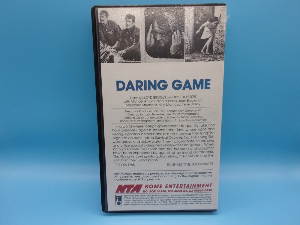 DARING GAME VHS PREVIOUSLY VIEWED ORIGINAL VIDEO CASSETTE. RARE, VERY HARD TO FIND COLLECTIBLE VIDEO. Please look at the photos carefully to make your own determination of condition. Case and tape appear to be in good condition. Tape has not been viewed / tested all the way through. Will go to the highest bidder and will ship USPS Media Mail. THANKS FOR LOOKING and BE SURE TO CHECK OUT OUR OTHER GREAT COLLECTIBLE ITEMS !
